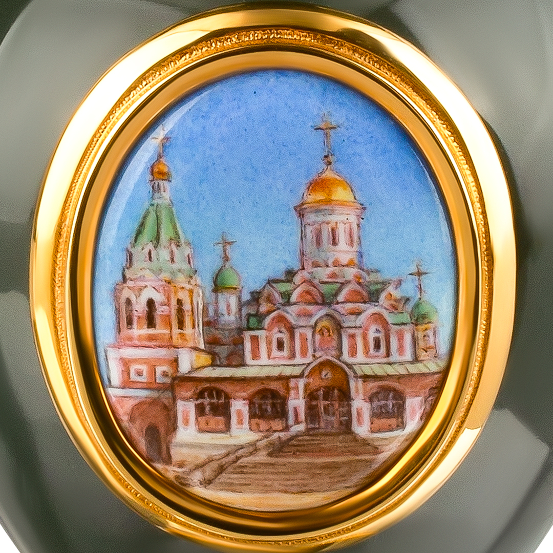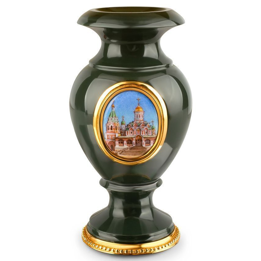 Ваза для цветов из латуни "С видами Москвы" с офиокальцитом