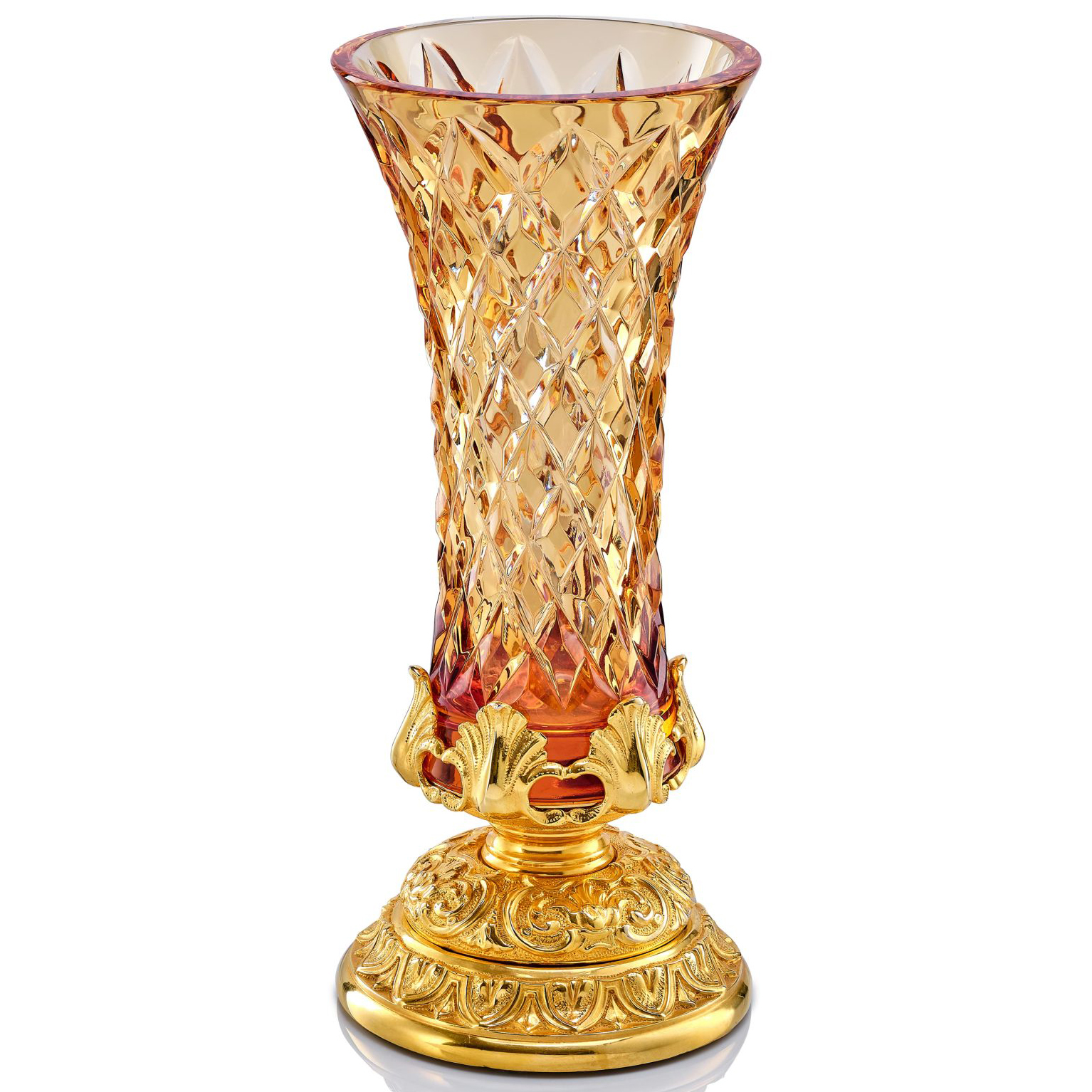 Лучезарное золото янтаря, заключенное в гранях совершенной формы, придает этой вазе царственное величие и магнетическую притягательность. Она словно переносит нас в роскошные залы эпохи Людовика XIV, где свет множества свечей играл в хрустале, наполняя пространство теплом и великолепием.