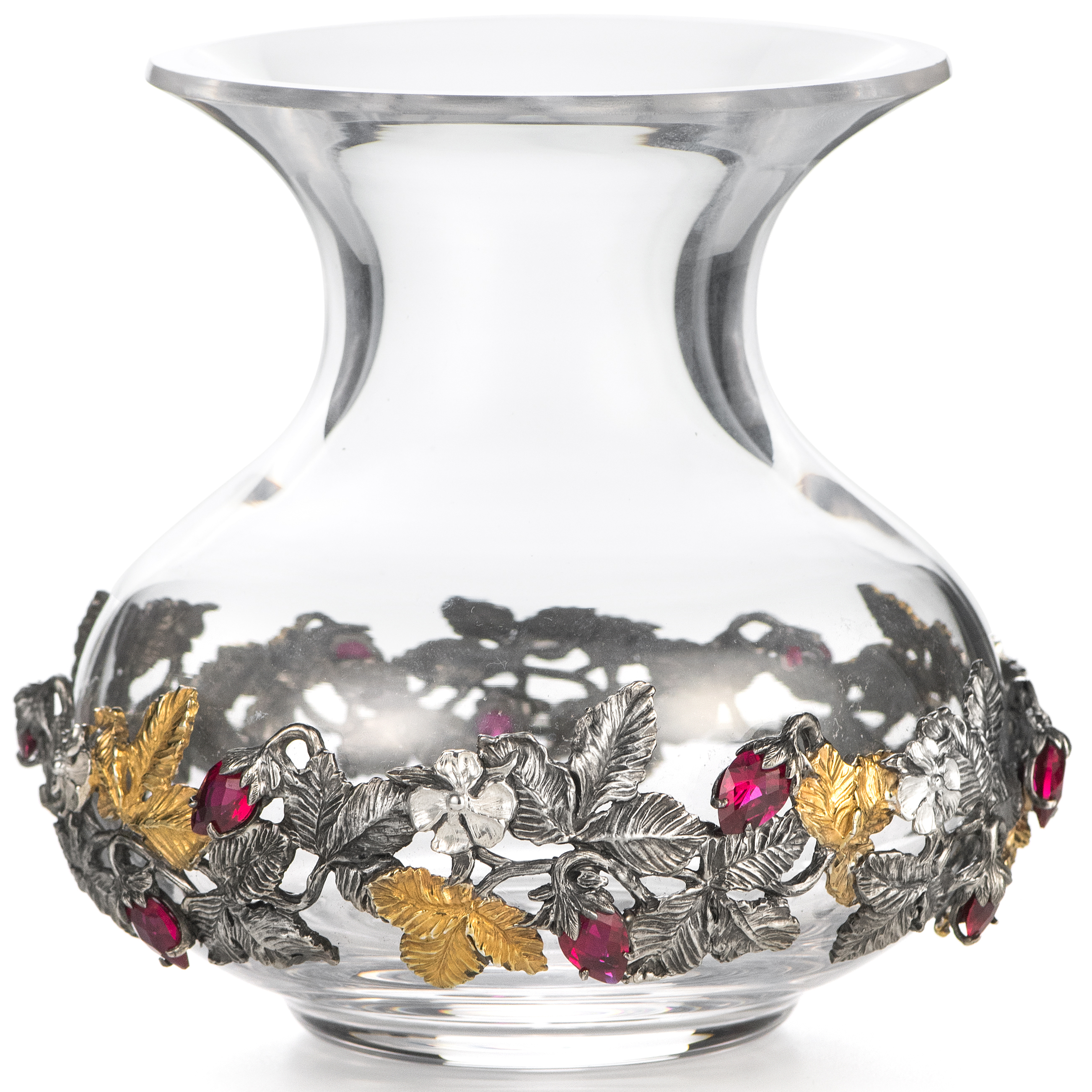 Вазочка хрустальная "Земляника" с серебром и корундами