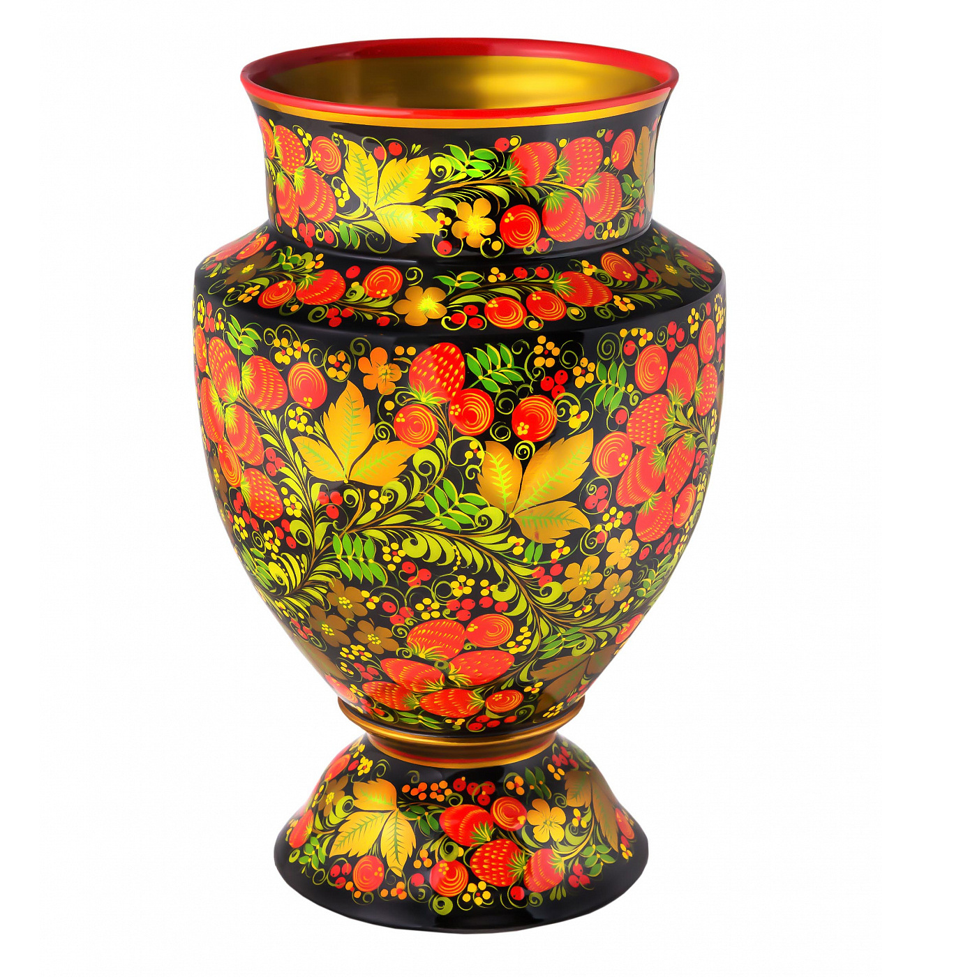 Ваза для цветов "Изобилие. Черный фон -Ягоды" хохлома