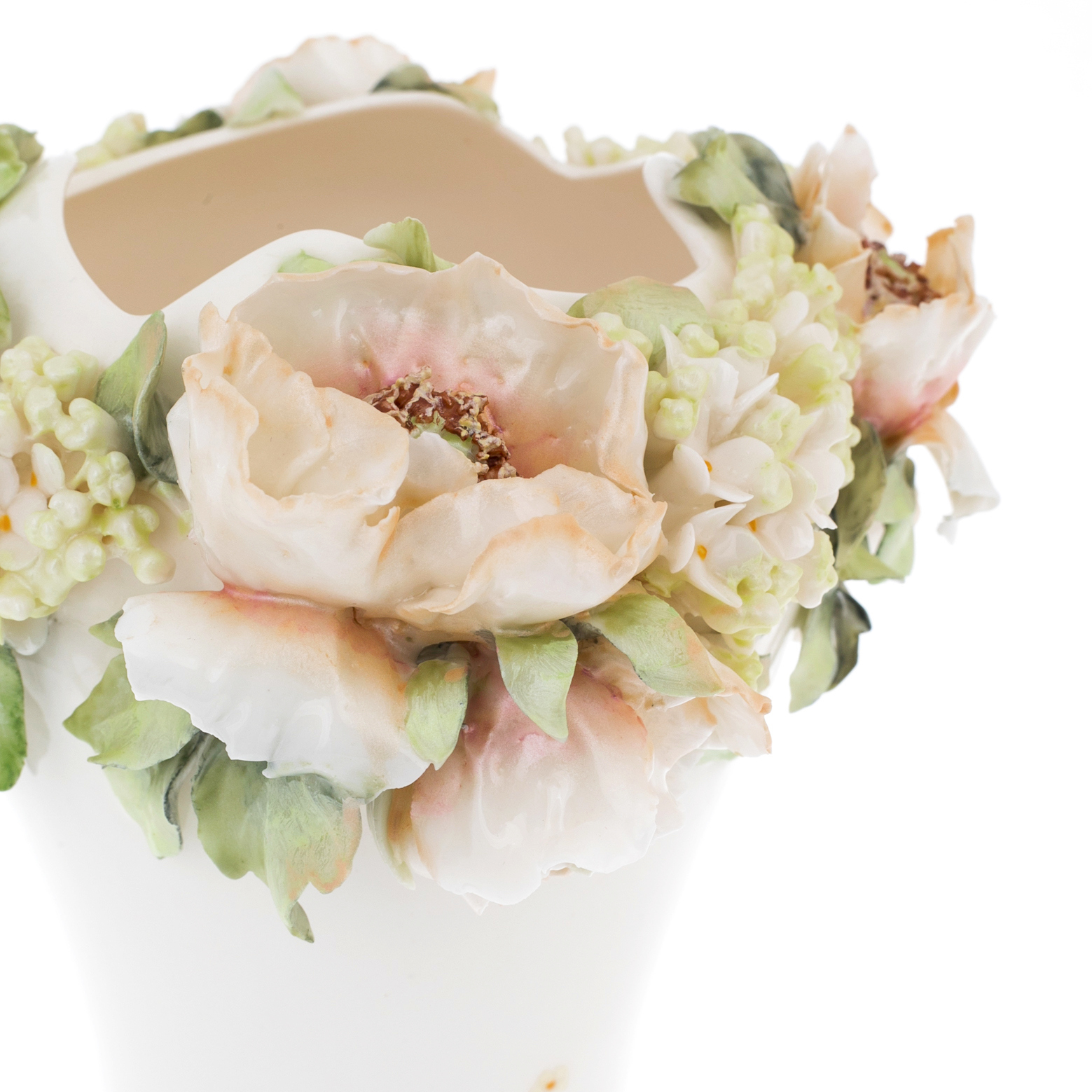 Цветочная композиция на фарфоре выглядит живой: пышные бутоны тянутся к свету, крохотные листья трепещут в невидимом дыхании ветра. В этой вазе чувствуется баланс природной стихийности и совершенства человеческого мастерства. Мастера подарили ей не просто форму, а душу, позволив сохранить ощущение цветущего луга, который не увядает.
