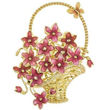 Брошь "Флора и фауна" из желтого золота с бриллиантами