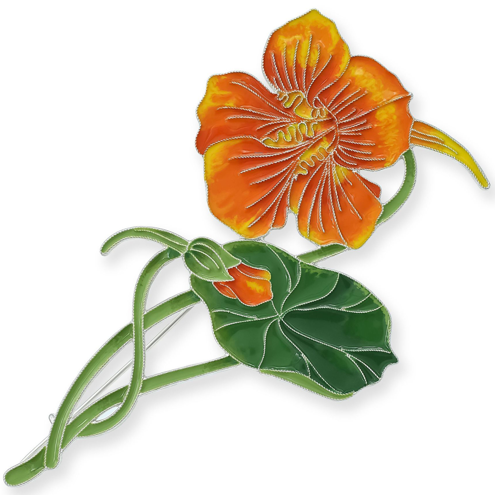 Брошь серебряная "Настурция" коллекции "Гербарий Татьяны Поляковой"