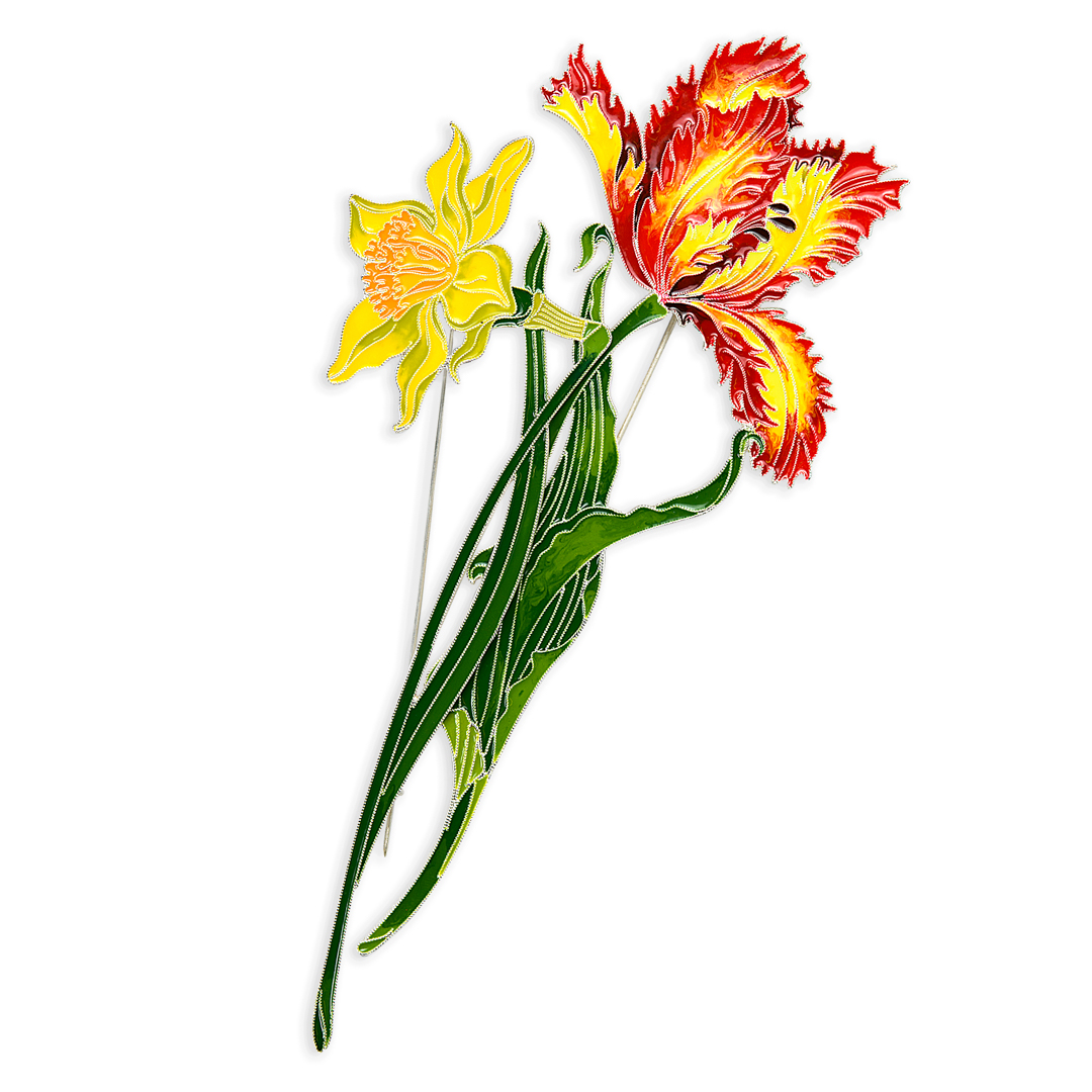 Набор серебряных брошей "Нарцисс несравненный и Елагинский тюльпан" коллекции "Гербарий Татьяны Поляковой"