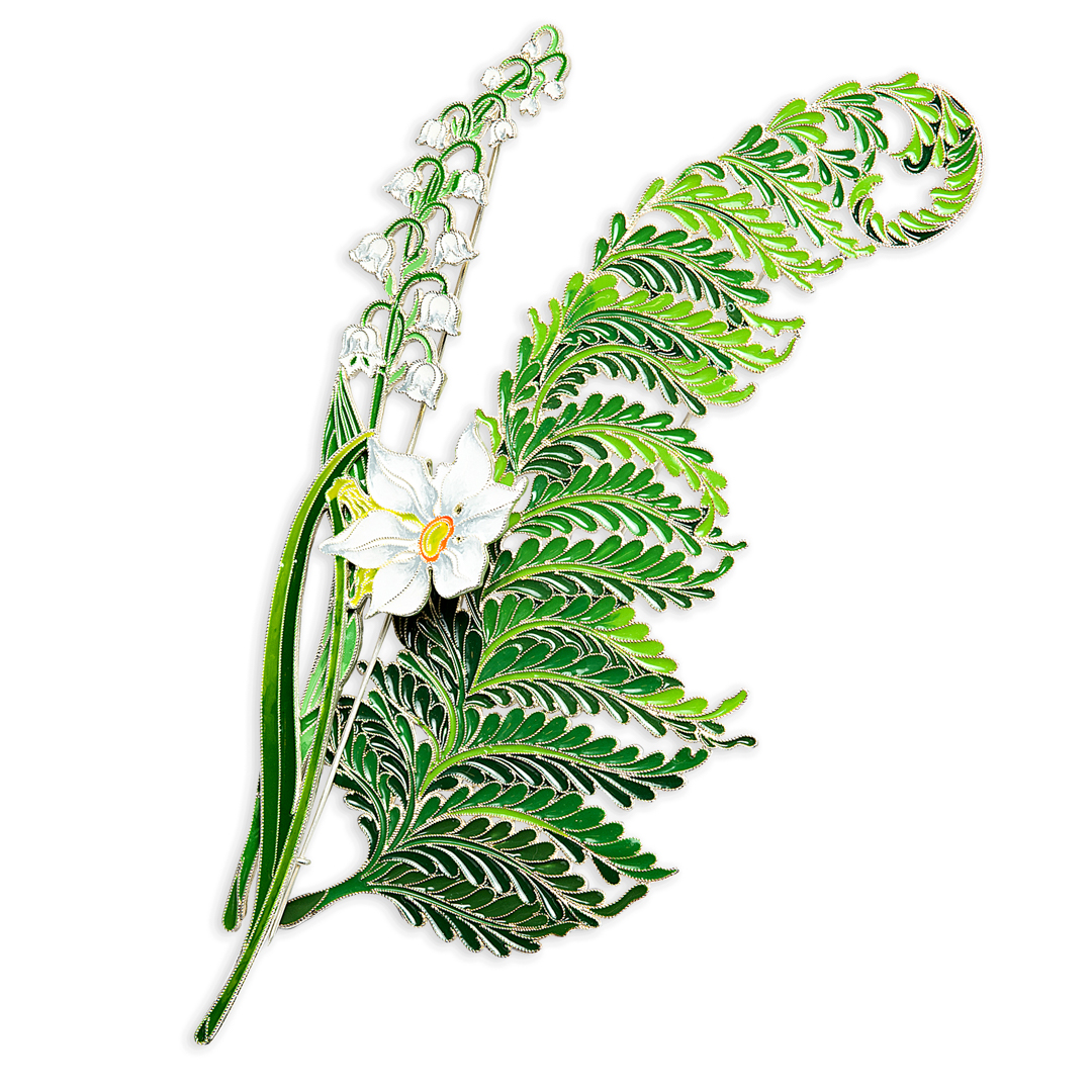 Набор серебряных брошей "Папоротник, Ландыш и Нарцисс поэтический" коллекции "Гербарий Татьяны Поляковой"