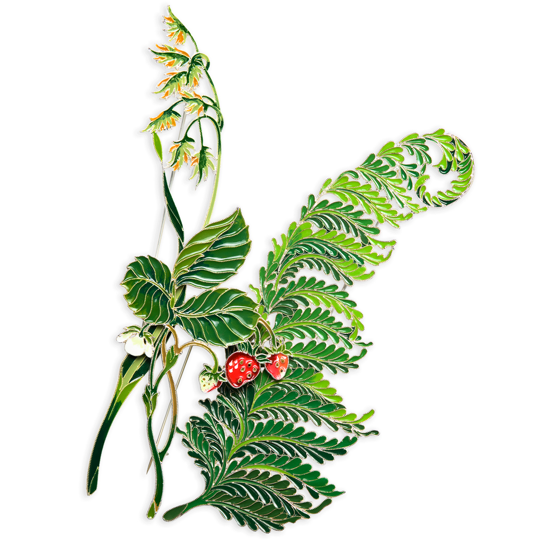 Набор серебряных брошей "Папоротник, Земляника и Канареечник тростниковидный" коллекции "Гербарий Татьяны Поляковой"