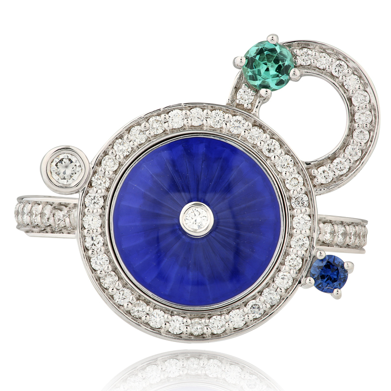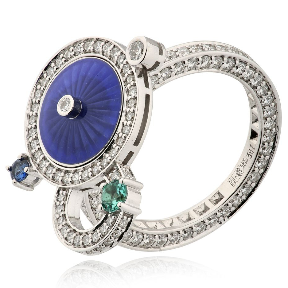 Кольцо "Heritage" из белого золота с сапфиром, изумрудом и бриллиантами