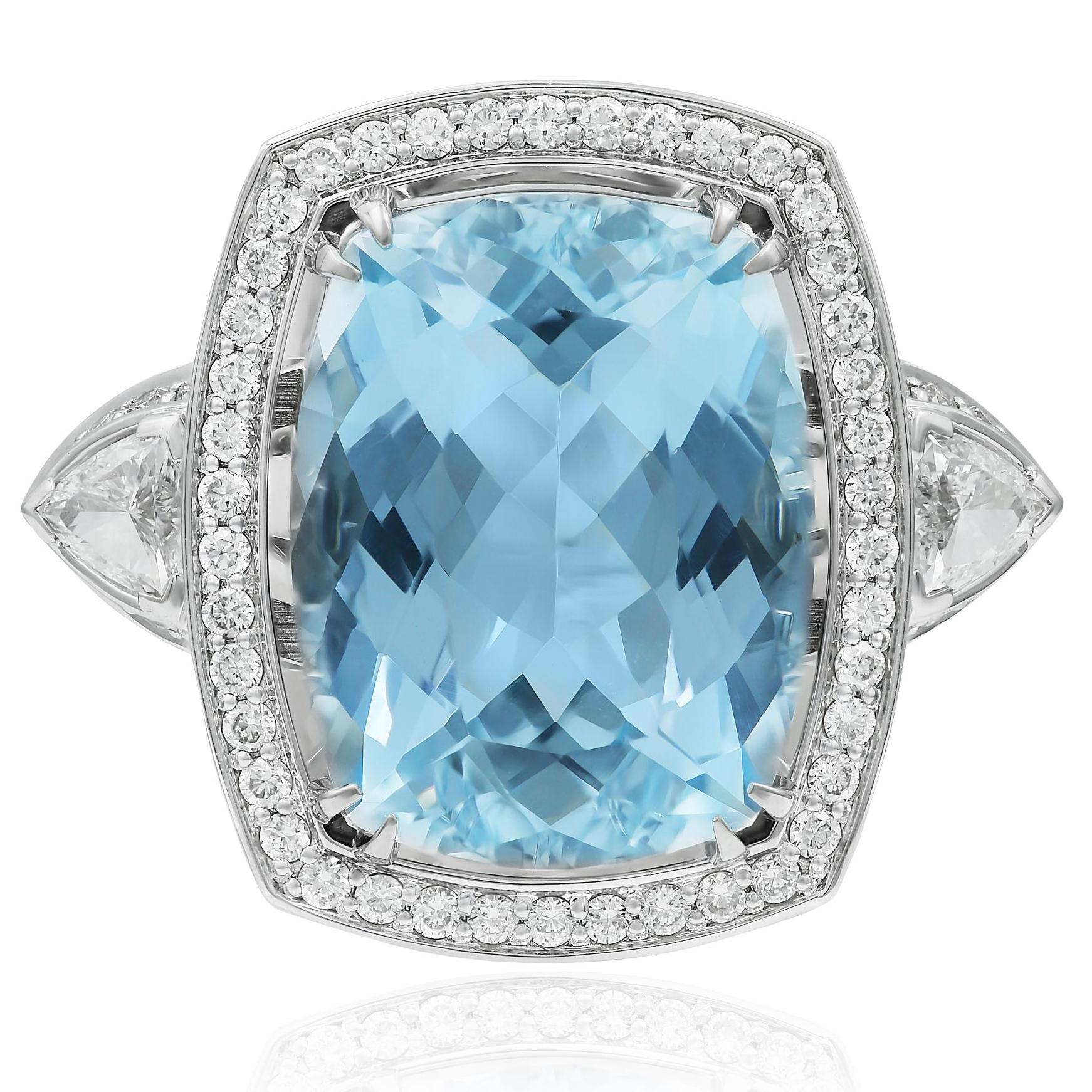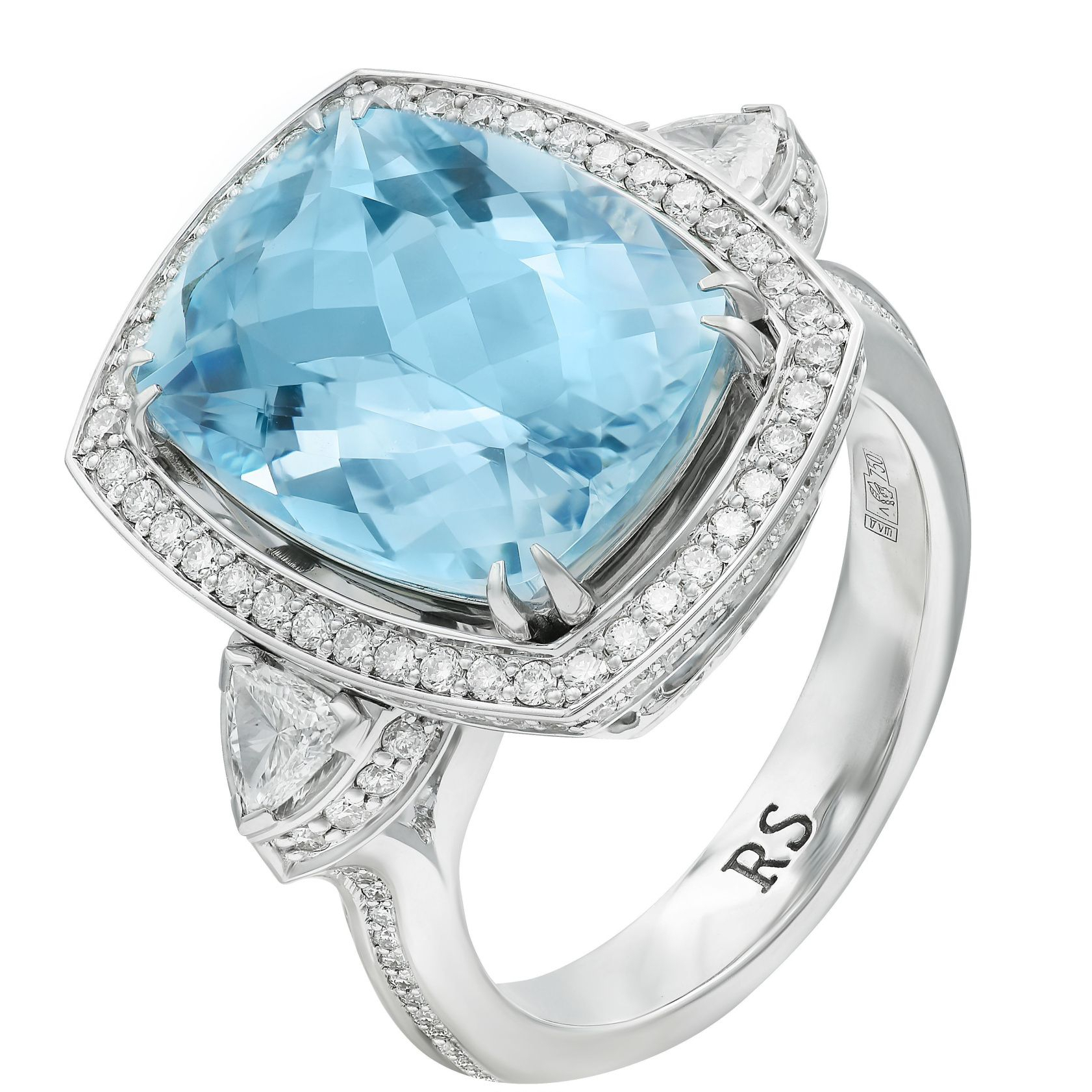 Кольцо "Imperial" из белого золота с бриллиантами и аквамарином