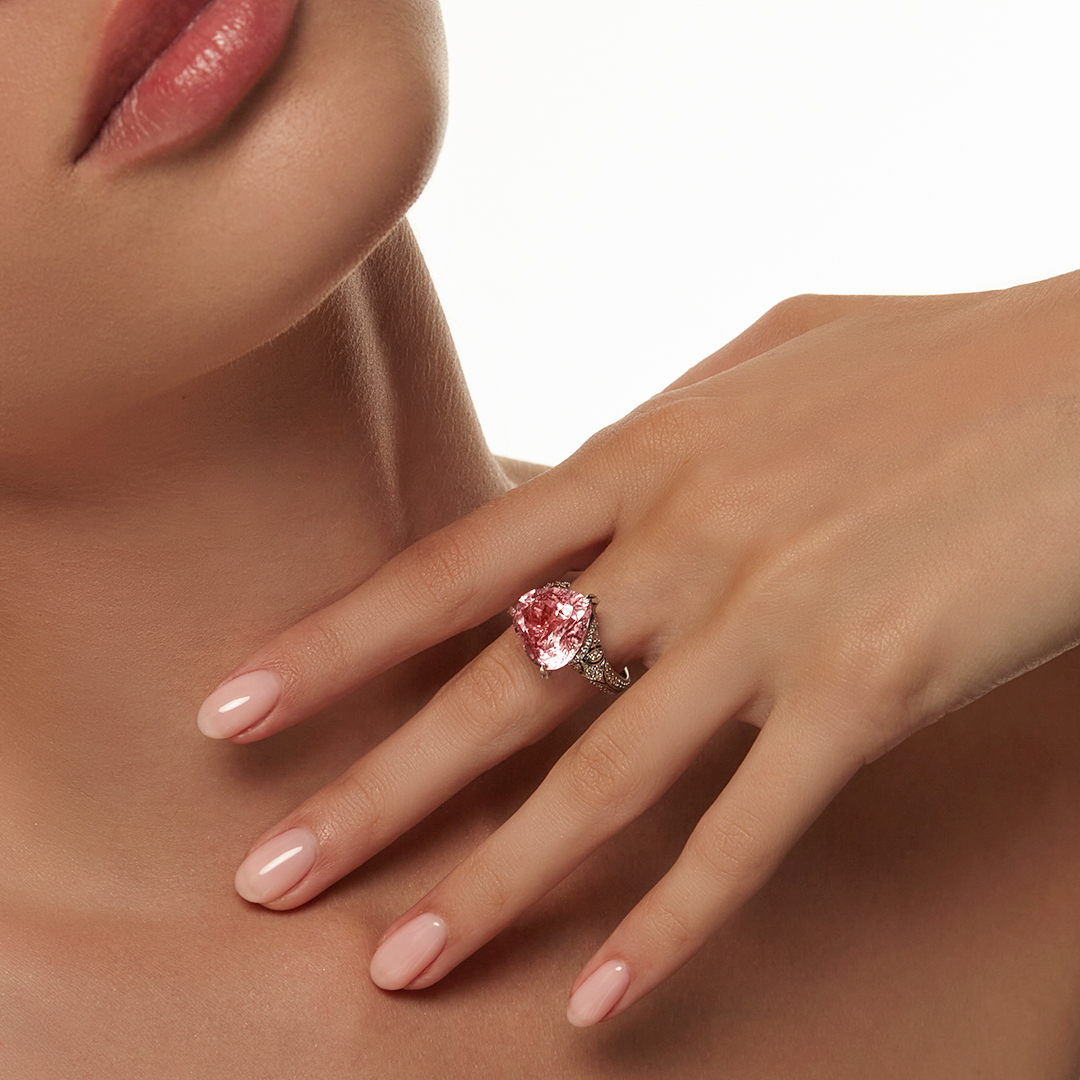 Кольцо "Imperial" из белого золота с морганитом и бриллиантами