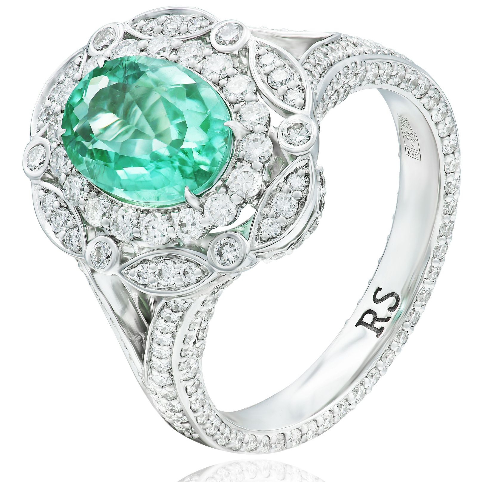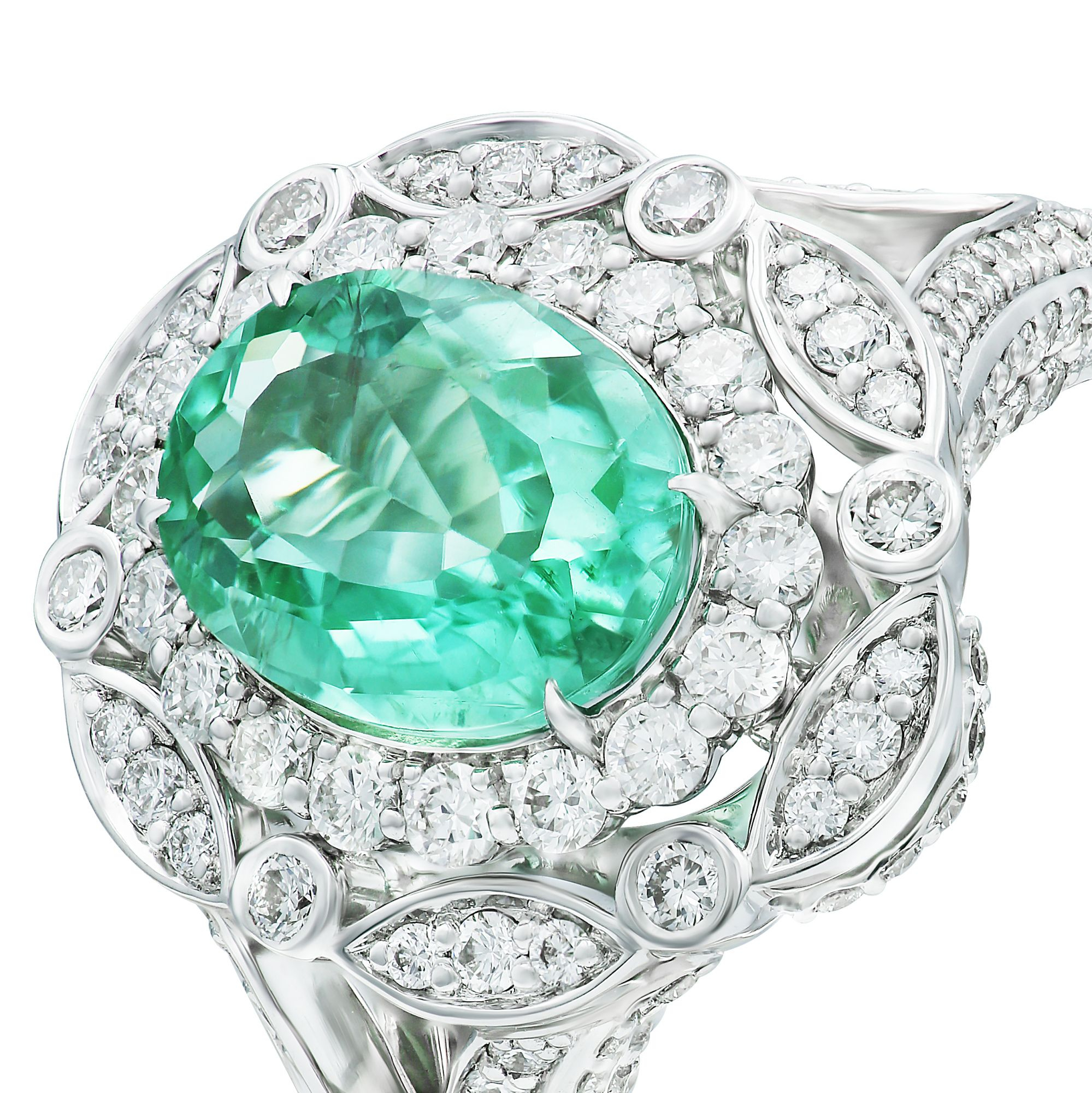 Кольцо "Imperial" из белого золота с турмалином параиба и бриллиантами