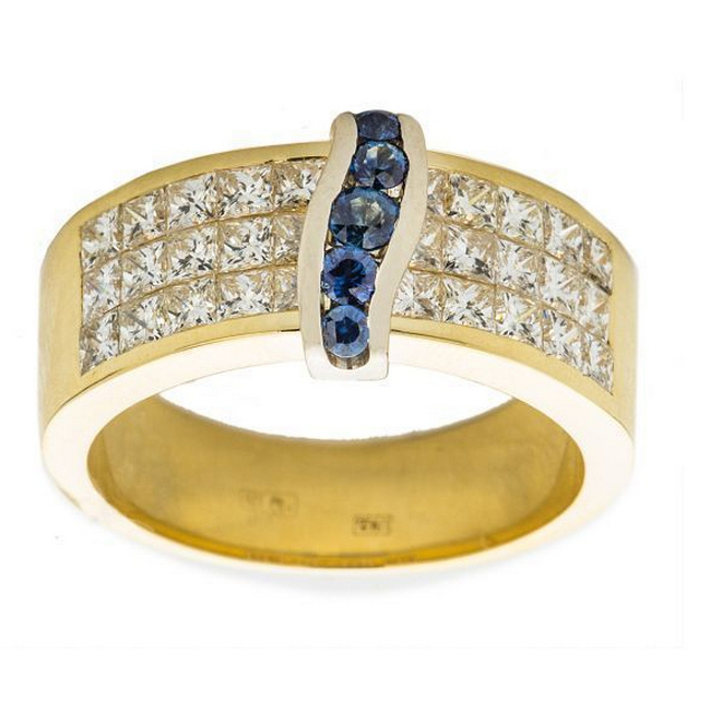Кольцо "Invisible" из желтого золота с сапфирами и бриллиантами