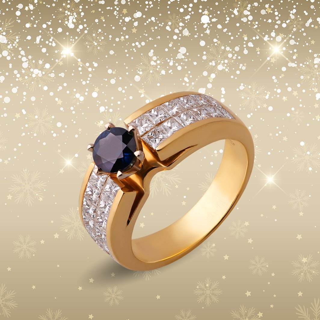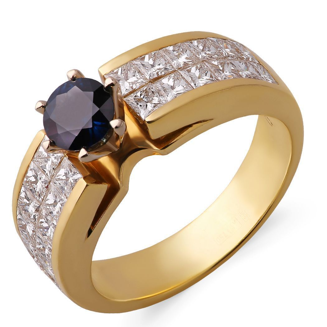 Кольцо "Invisible" из желтого золота с сапфиром и бриллиантами