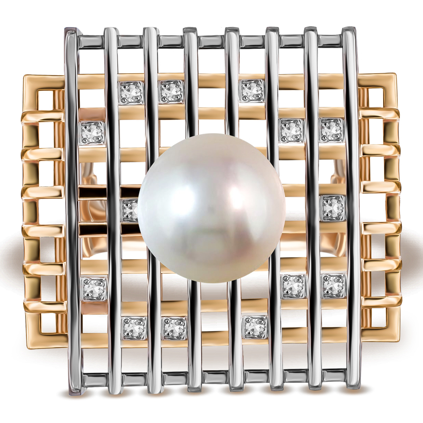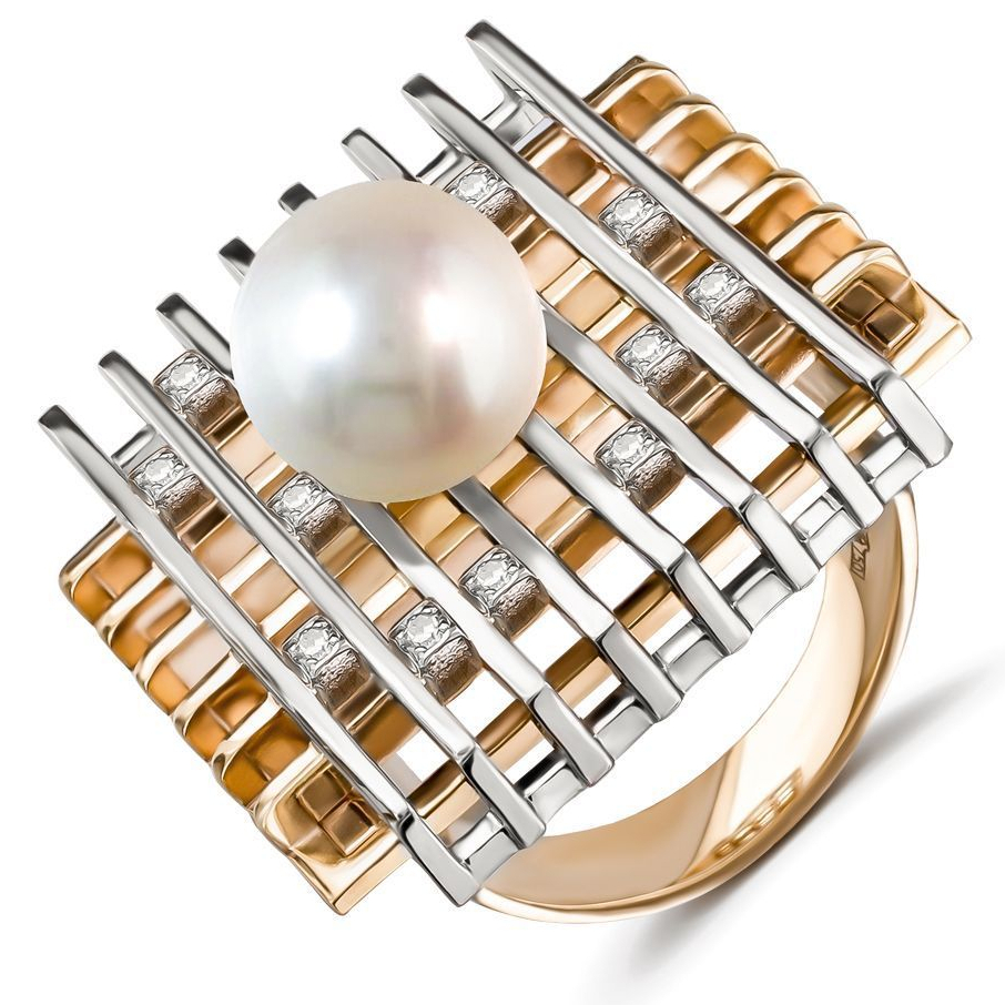 Кольцо из желтого золота с бриллиантами и жемчугом