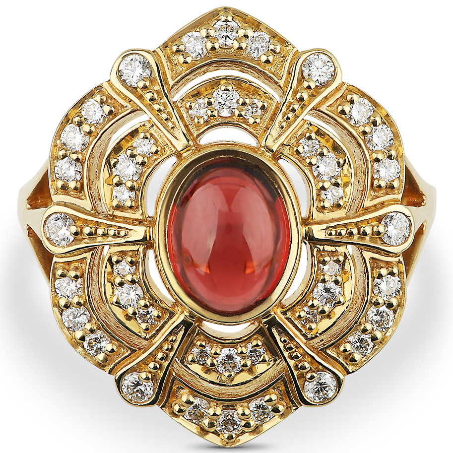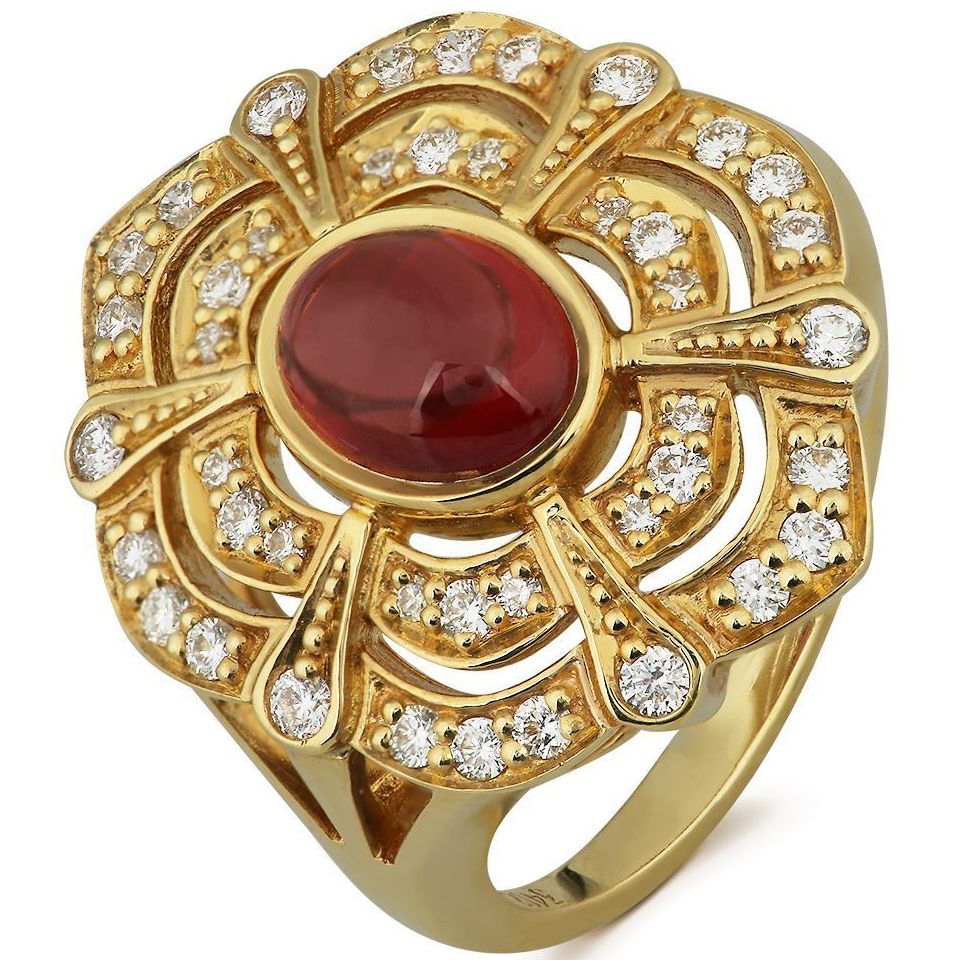 Кольцо из желтого золота с гранатом и бриллиантами