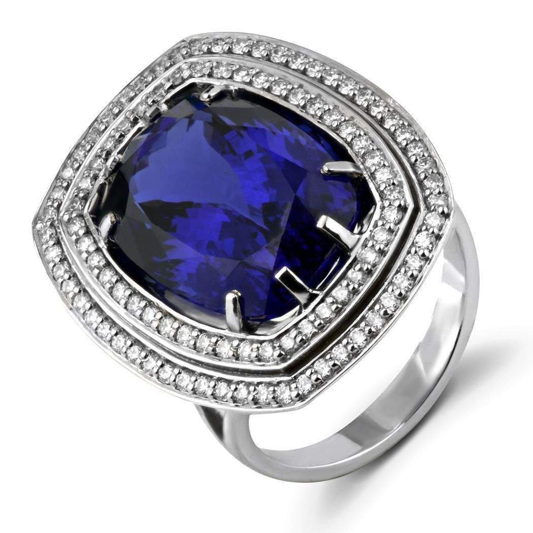 Кольцо "Сердце Танзании" из белого золота с бриллиантами и танзанитом