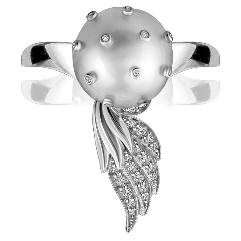 Кольцо "Жемчужный вальс" из белого золота с жемчугом и бриллиантами