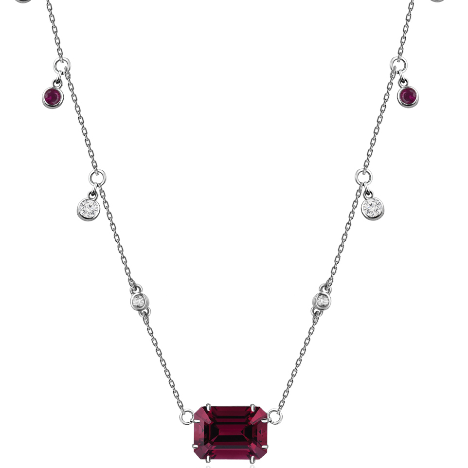 Колье из белого золота с гранатом, рубинами и бриллиантами