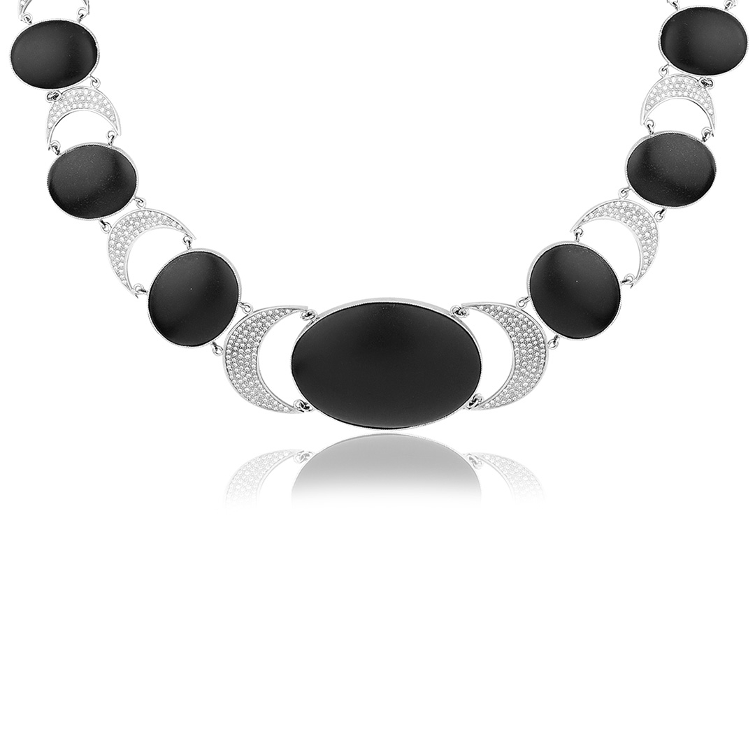Колье "Ночь на Везувии" из белого золота с бриллиантами и агатами