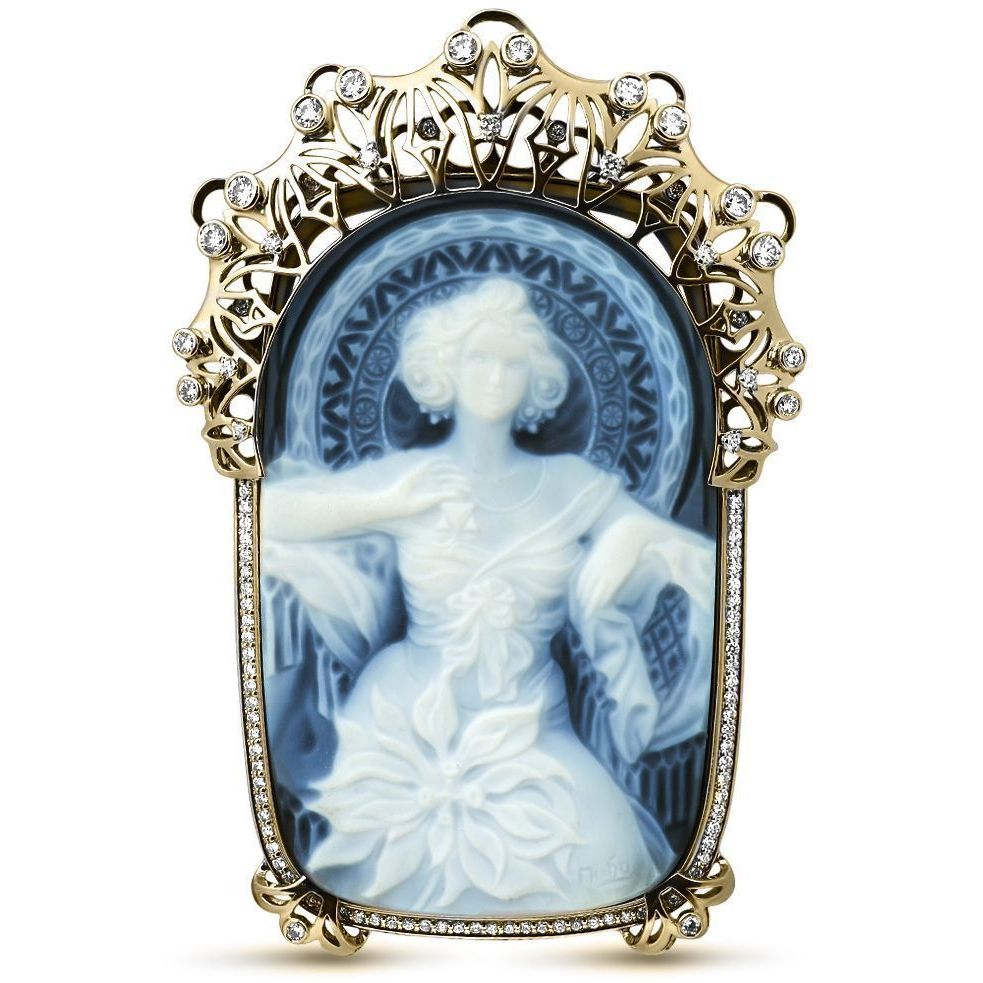 Брошь-подвеска "Моя прекрасная леди" из белого золота с агатом и бриллиантами