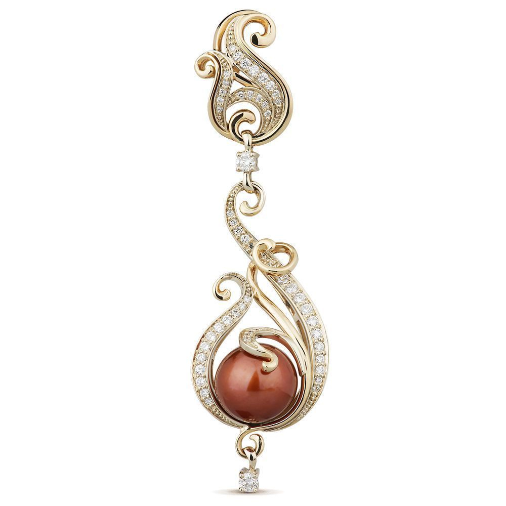 Подвеска "Подвеска «Шоколад и мед" из желтого золота с жемчугом и бриллиантами