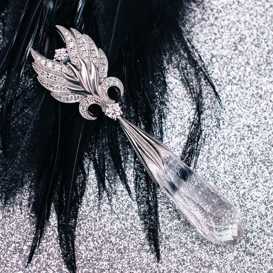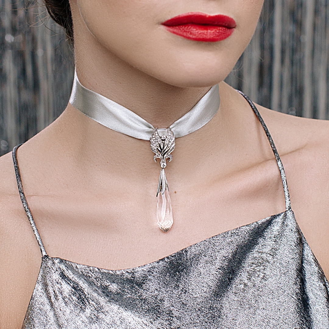 Подвеска "Слезы ангела" из белого золота с кварцем и бриллиантами