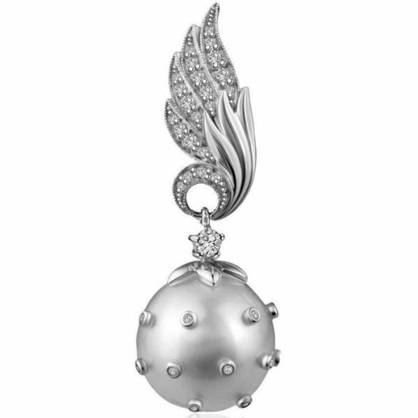 Подвеска "Слезы ангела" из белого золота с жемчугом и бриллиантами