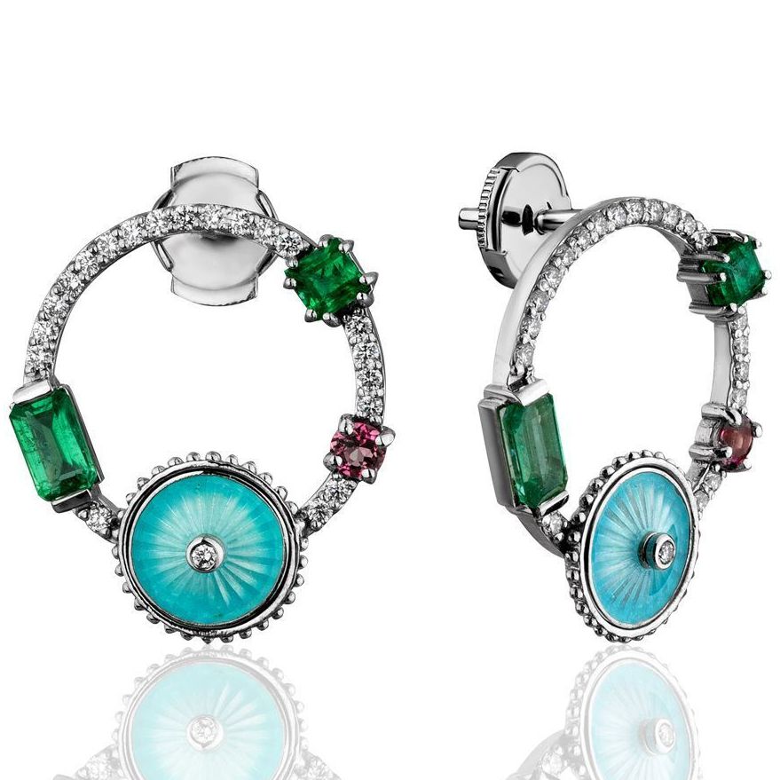 Серьги "Heritage" из белого золота с изумрудами, турмалинами и бриллиантами