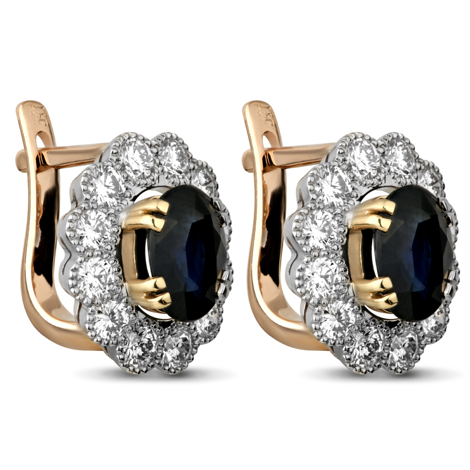 Серьги из красного золота с бриллиантами и сапфирами