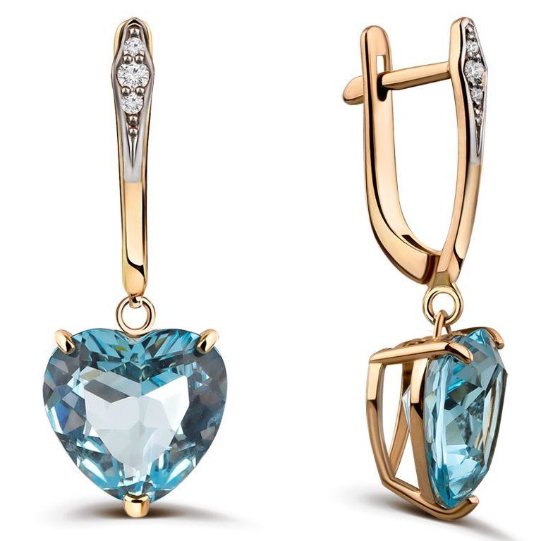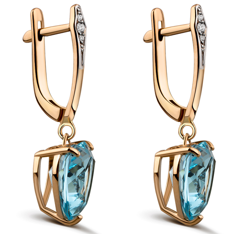 Серьги из красного золота с бриллиантами и топазами