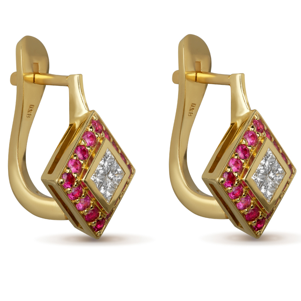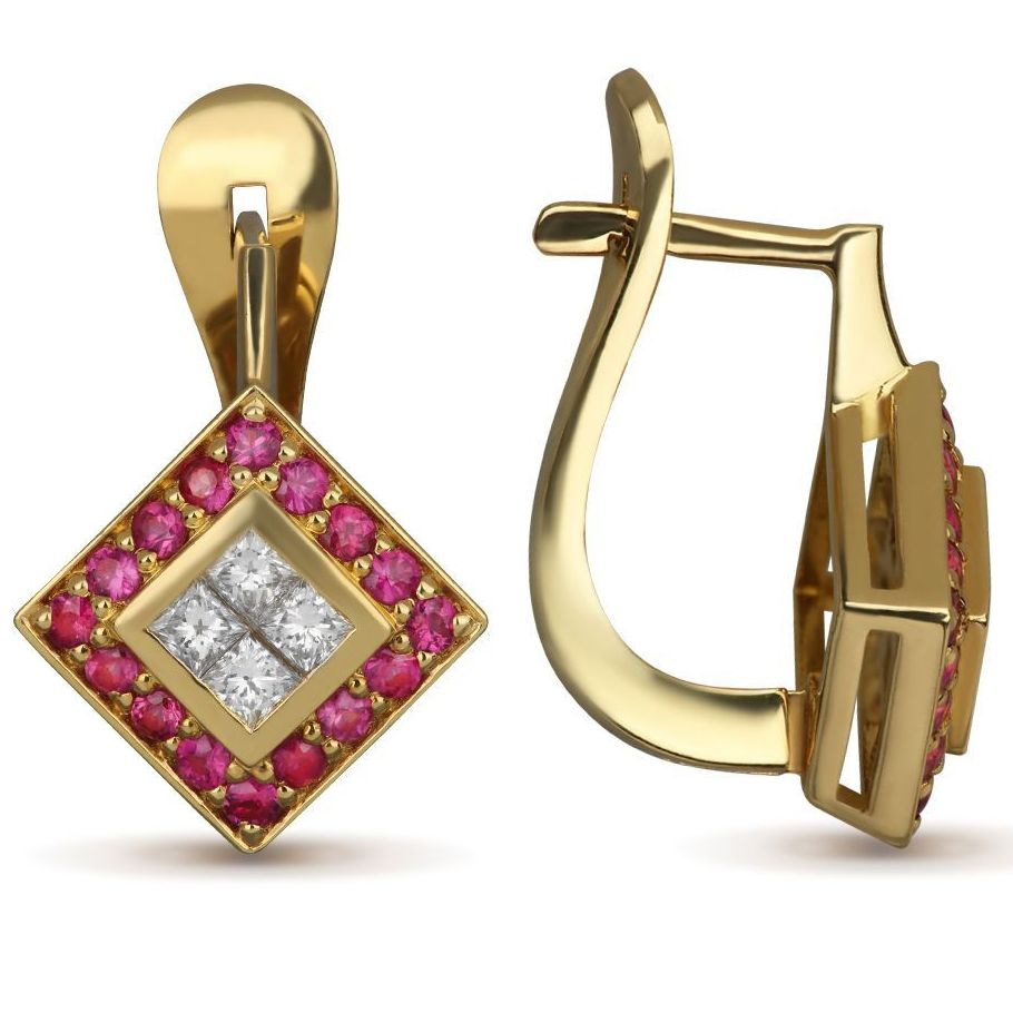 Серьги из желтого золота с рубинами и бриллиантами