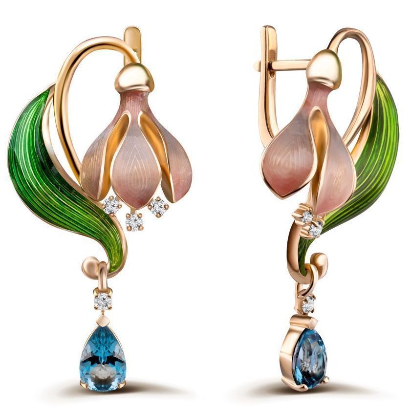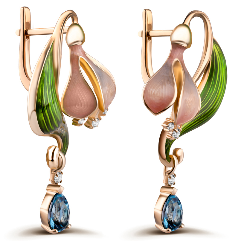 Серьги из желтого золота с топазами и бриллиантами