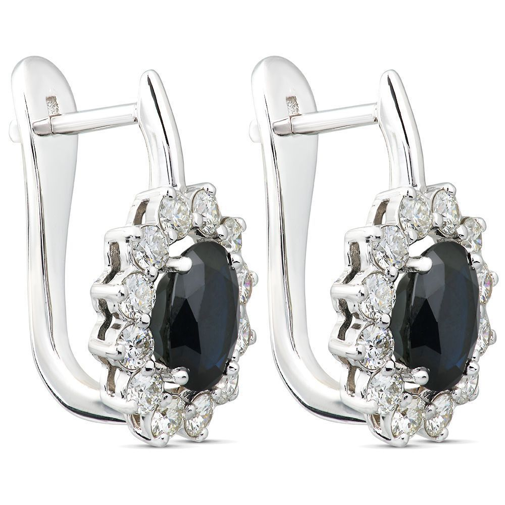 Серьги "Малинки" из белого золота с бриллиантами и сапфирами