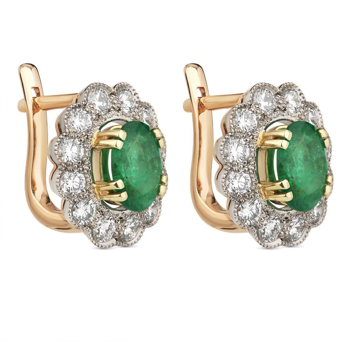 Серьги "Малинки" из красного золота с изумрудами и бриллиантами