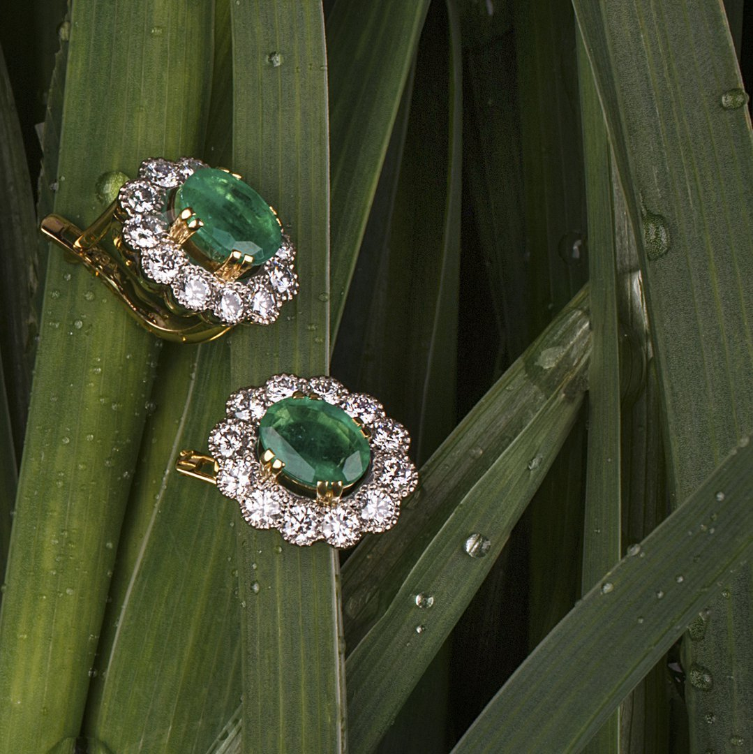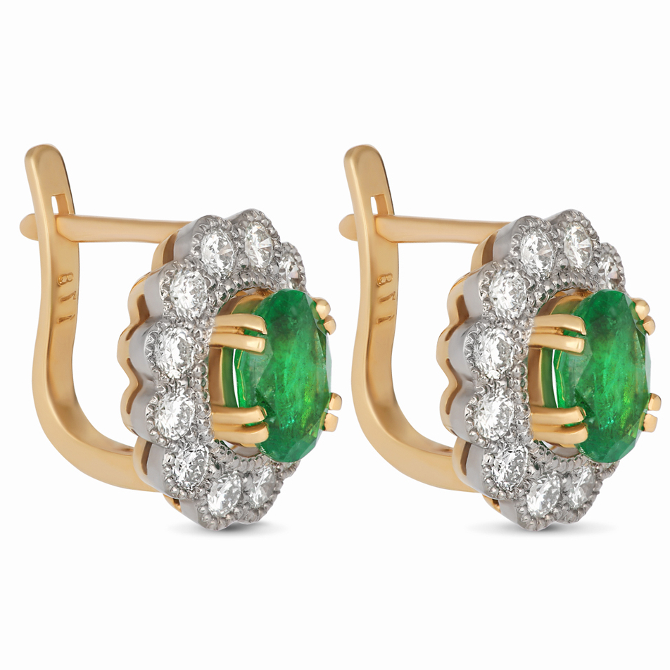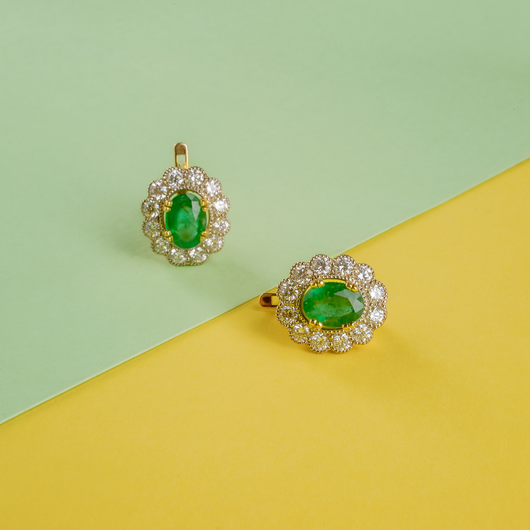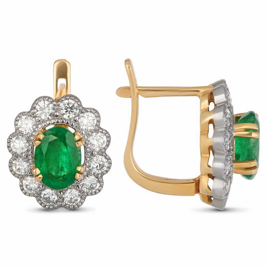 Серьги "Малинки" из желтого золота с бриллиантами и изумрудами