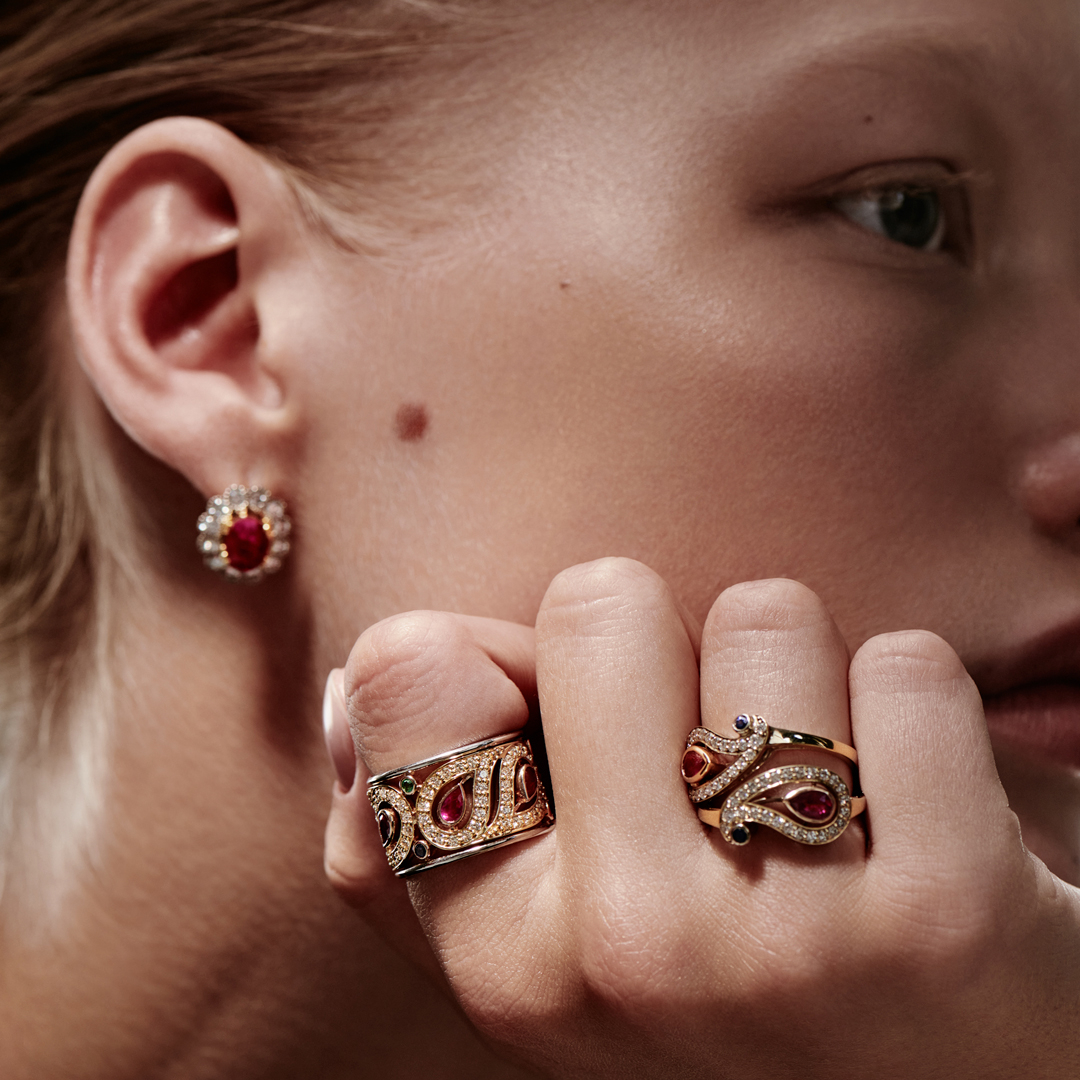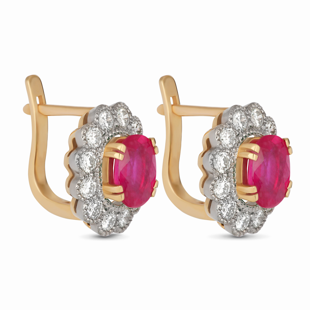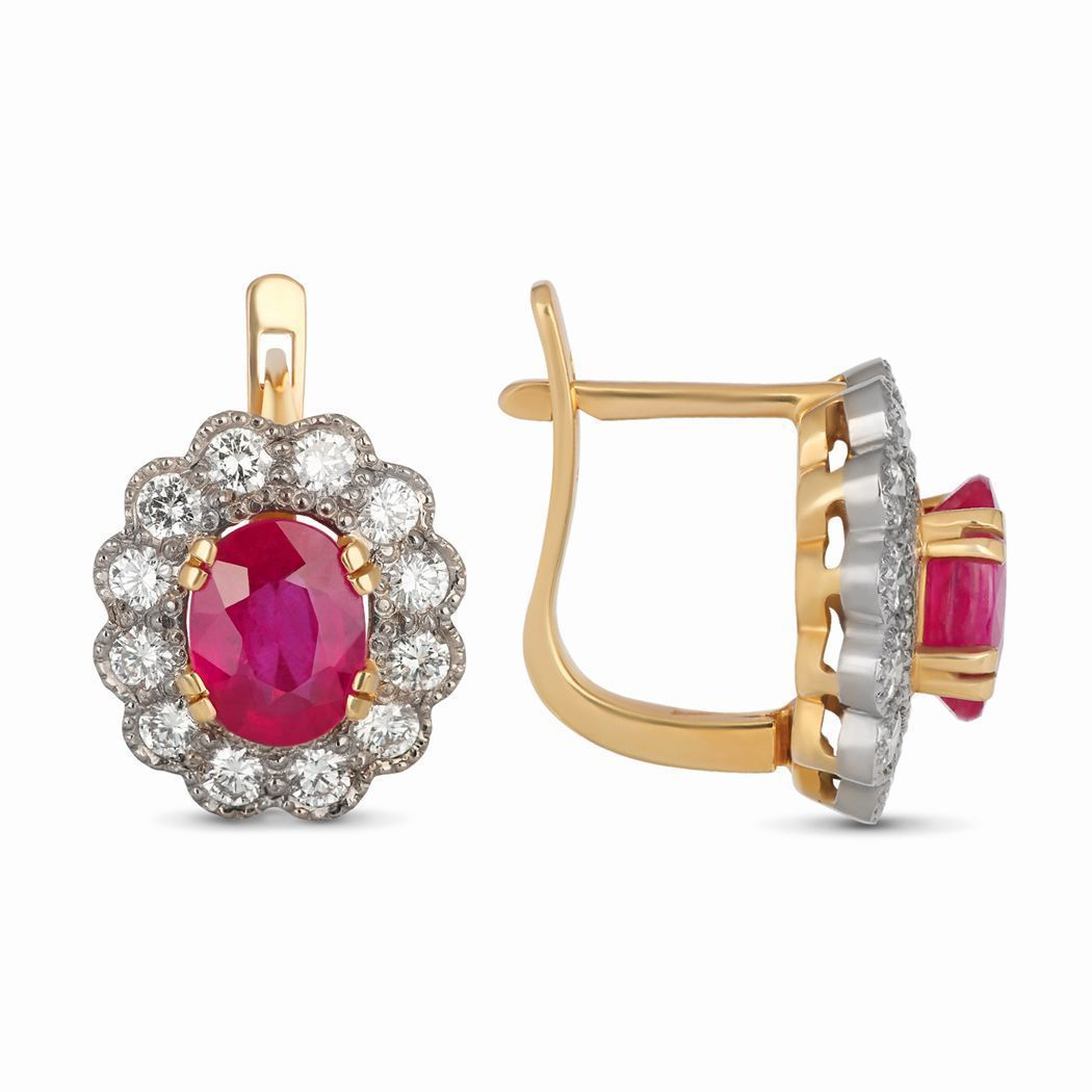 Серьги "Малинки" из желтого золота с рубинами и бриллиантами