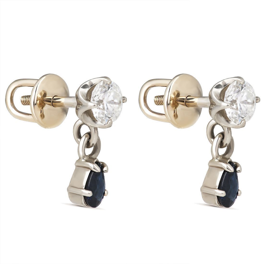 Серьги "Самоцветы" из белого золота с бриллиантом и сапфирами
