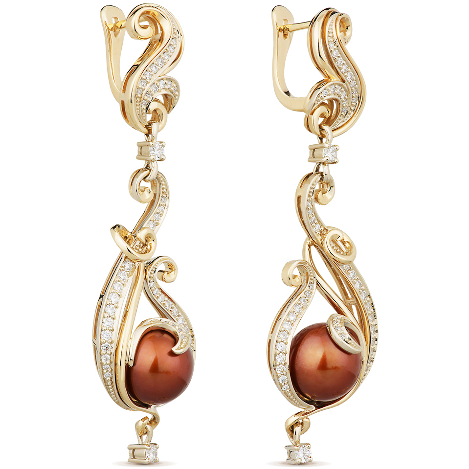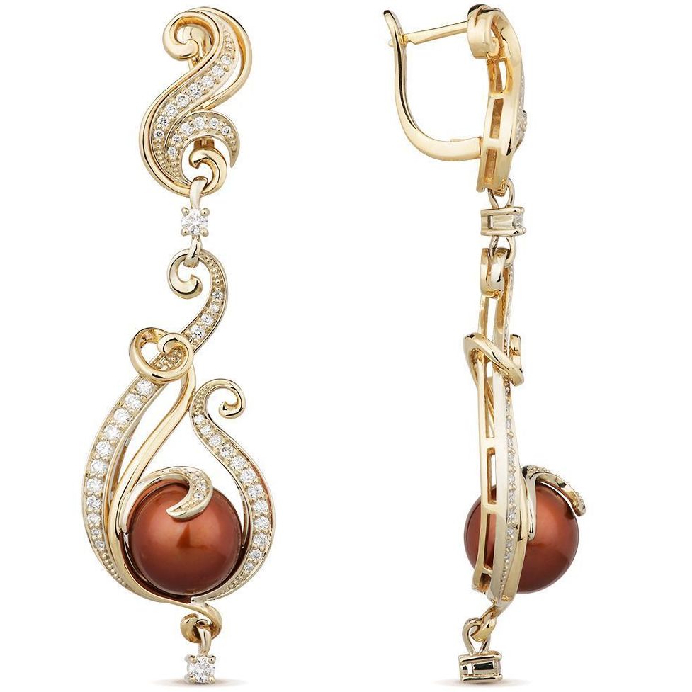 Серьги "Шоколад и мед" из желтого золота с жемчугом и бриллиантами