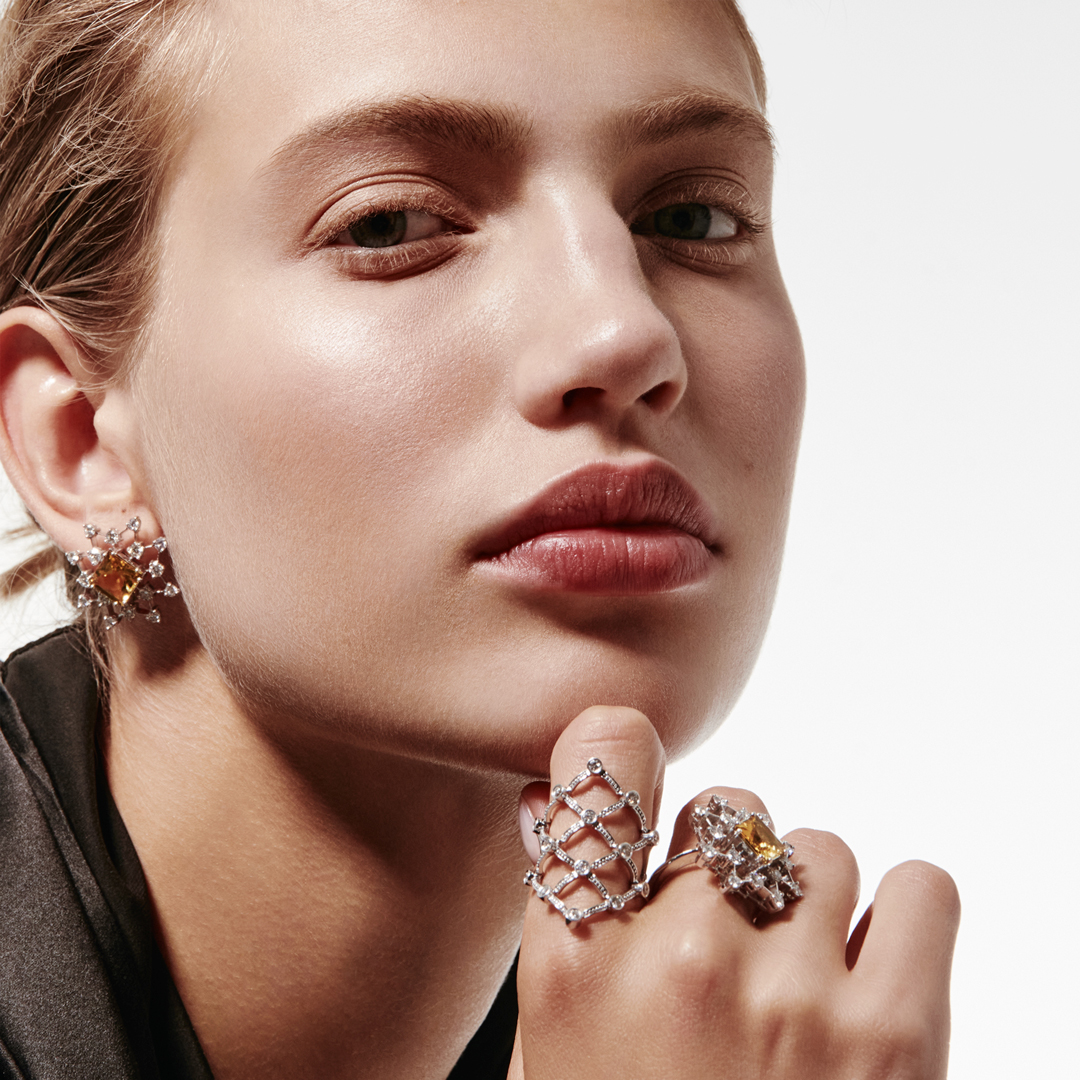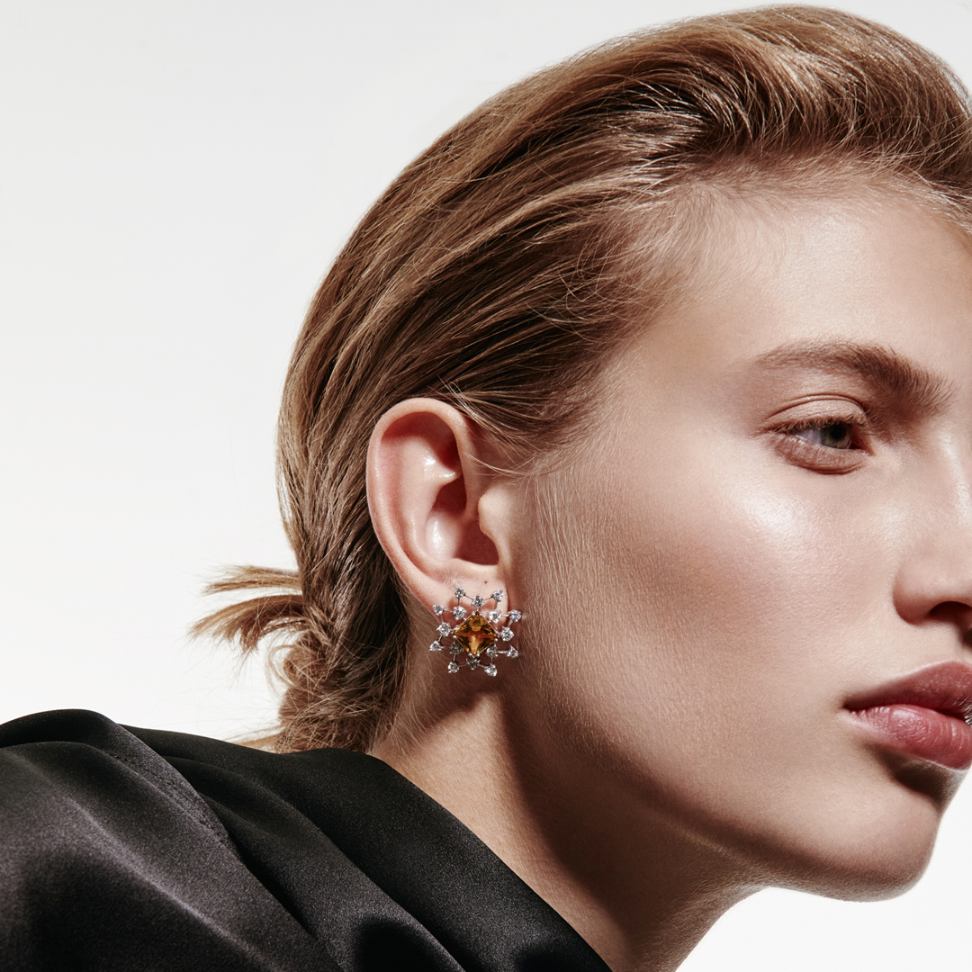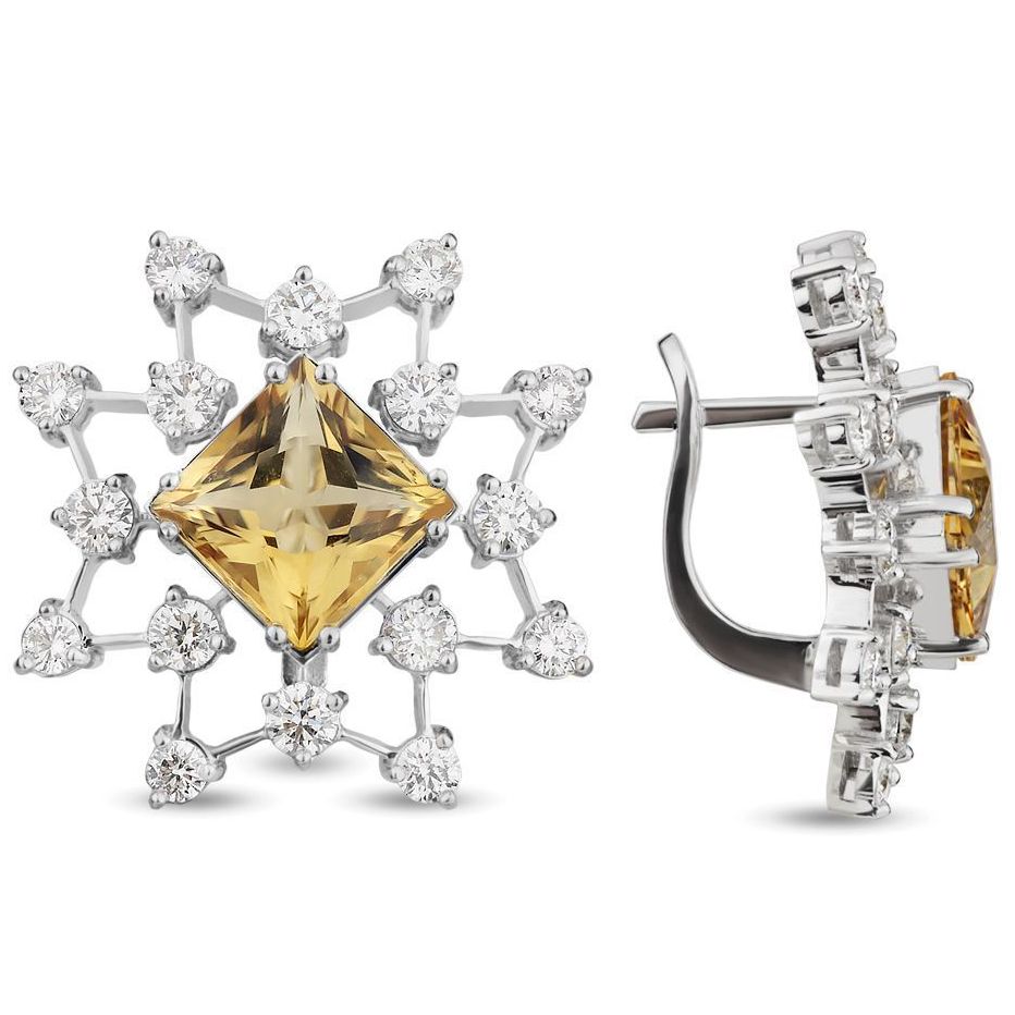 Серьги "Звездный дождь" из белого золота с цитринами бриллиантами