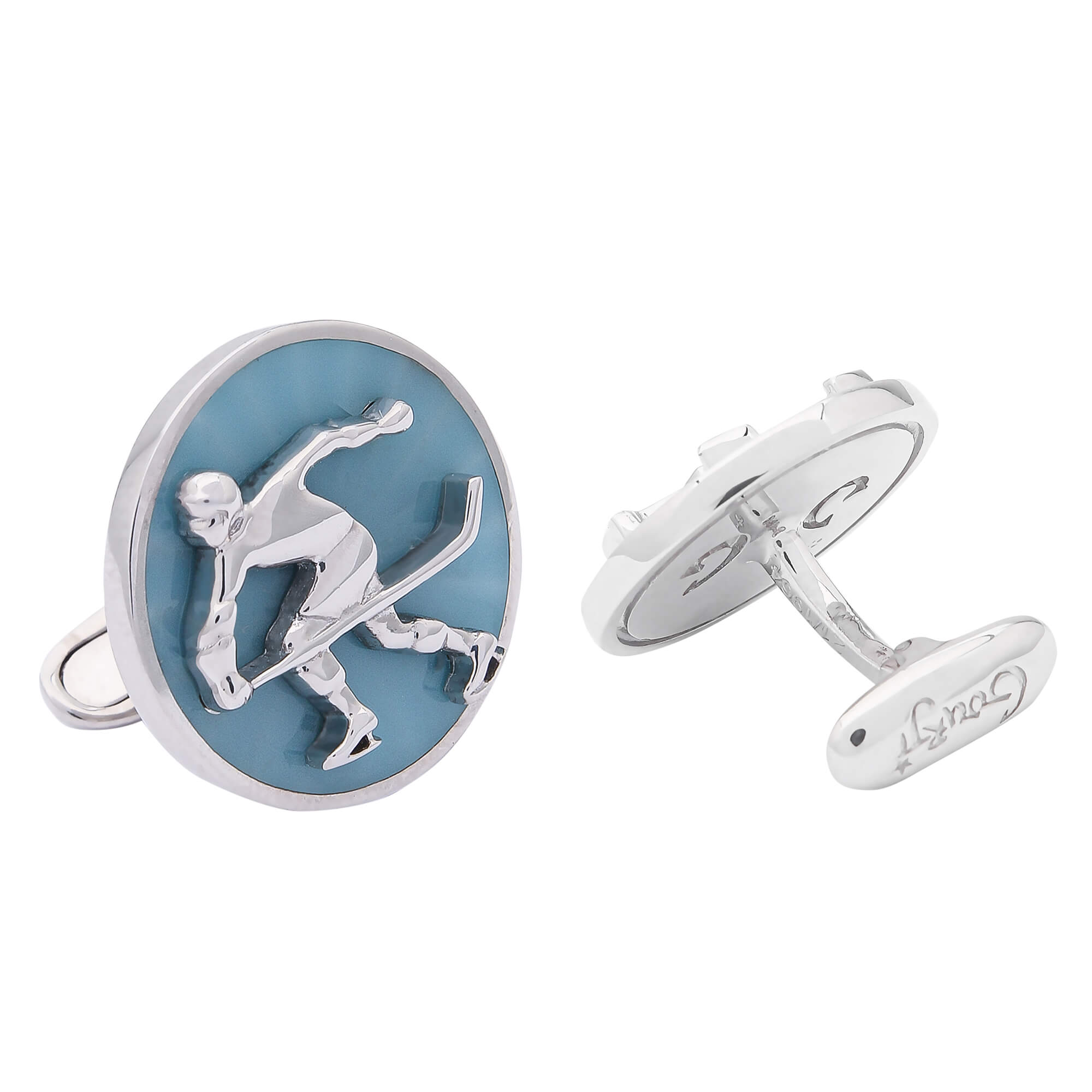 Запонки "Хоккеист" из серебра с эмалью