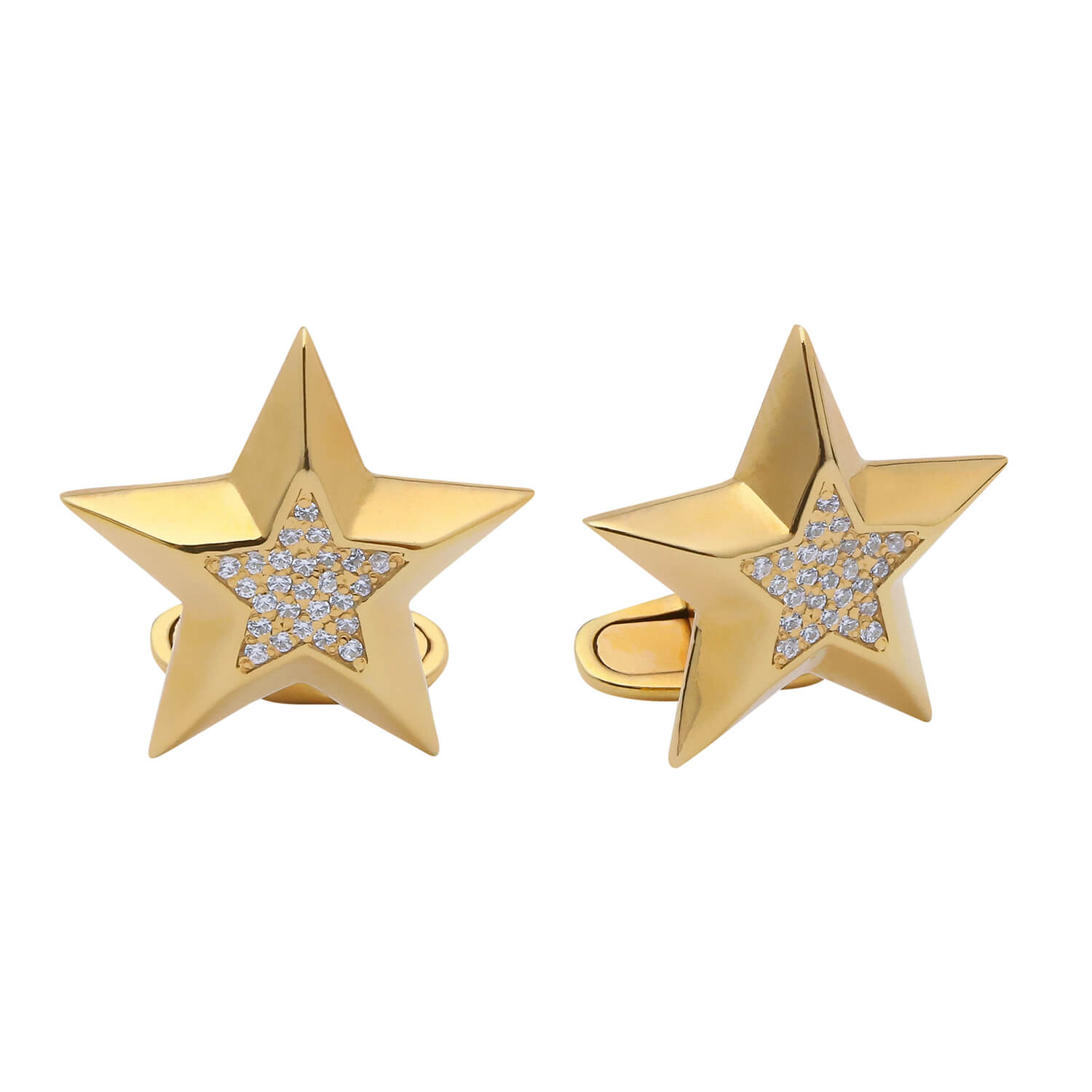Запонки "Маршальская звезда" из серебра с позолотой и фианитами