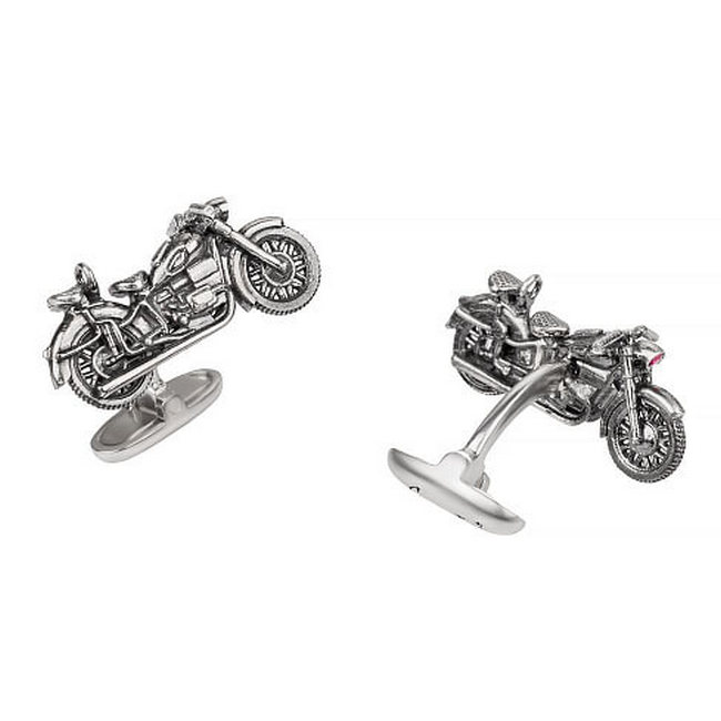 Запонки "Мотоцикл" из серебра с рубинами