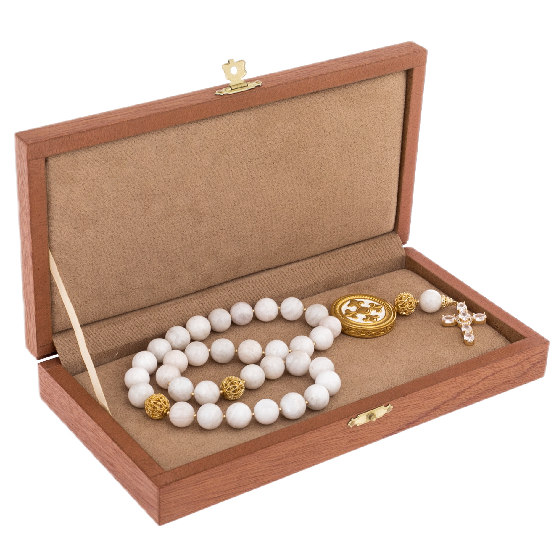 Такая вещь не носится — её ощущают. Чётки уместны в руках человека, чья вера — не декларация, а твердь. Это дар для сильного, но смиренного; влиятельного, но кроткого духом. Предмет, наделённый смыслом, благородством и безмолвной глубиной — не просто аксессуар, а свидетельство пути, в котором каждое прикосновение приближает к вечному.