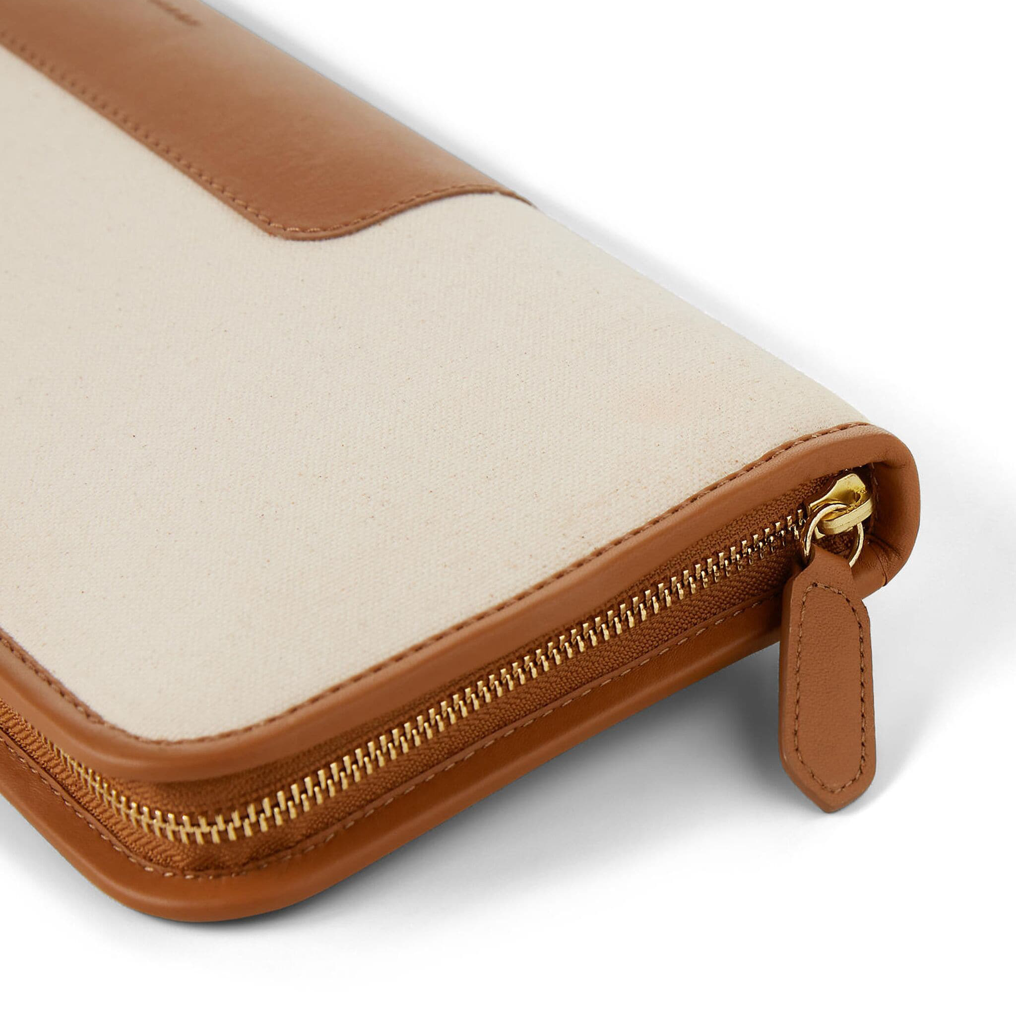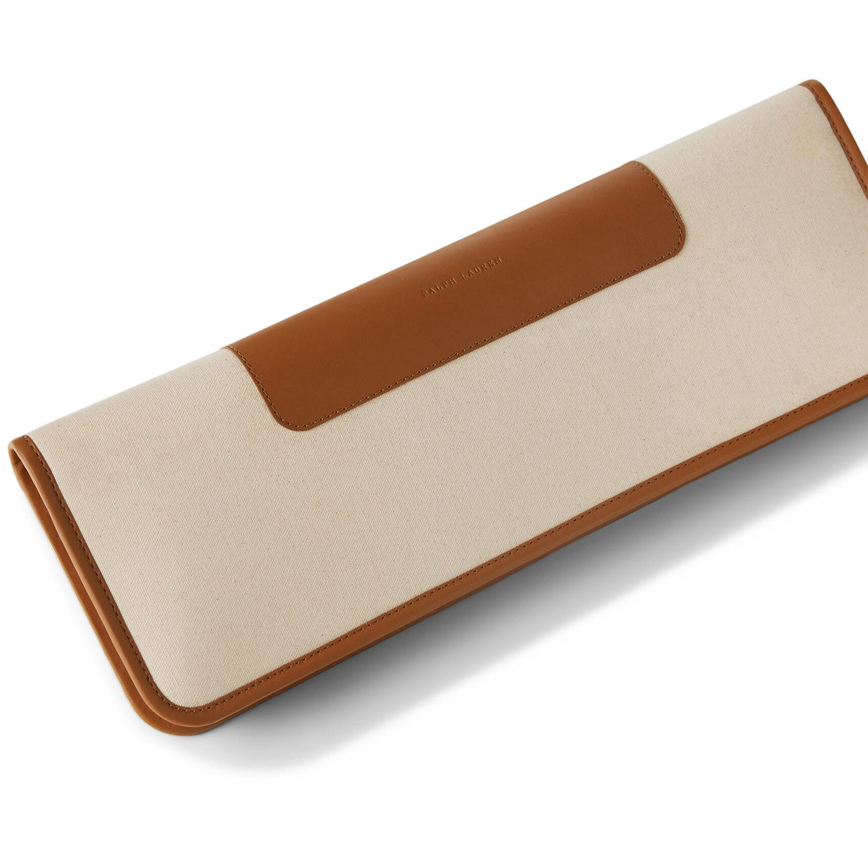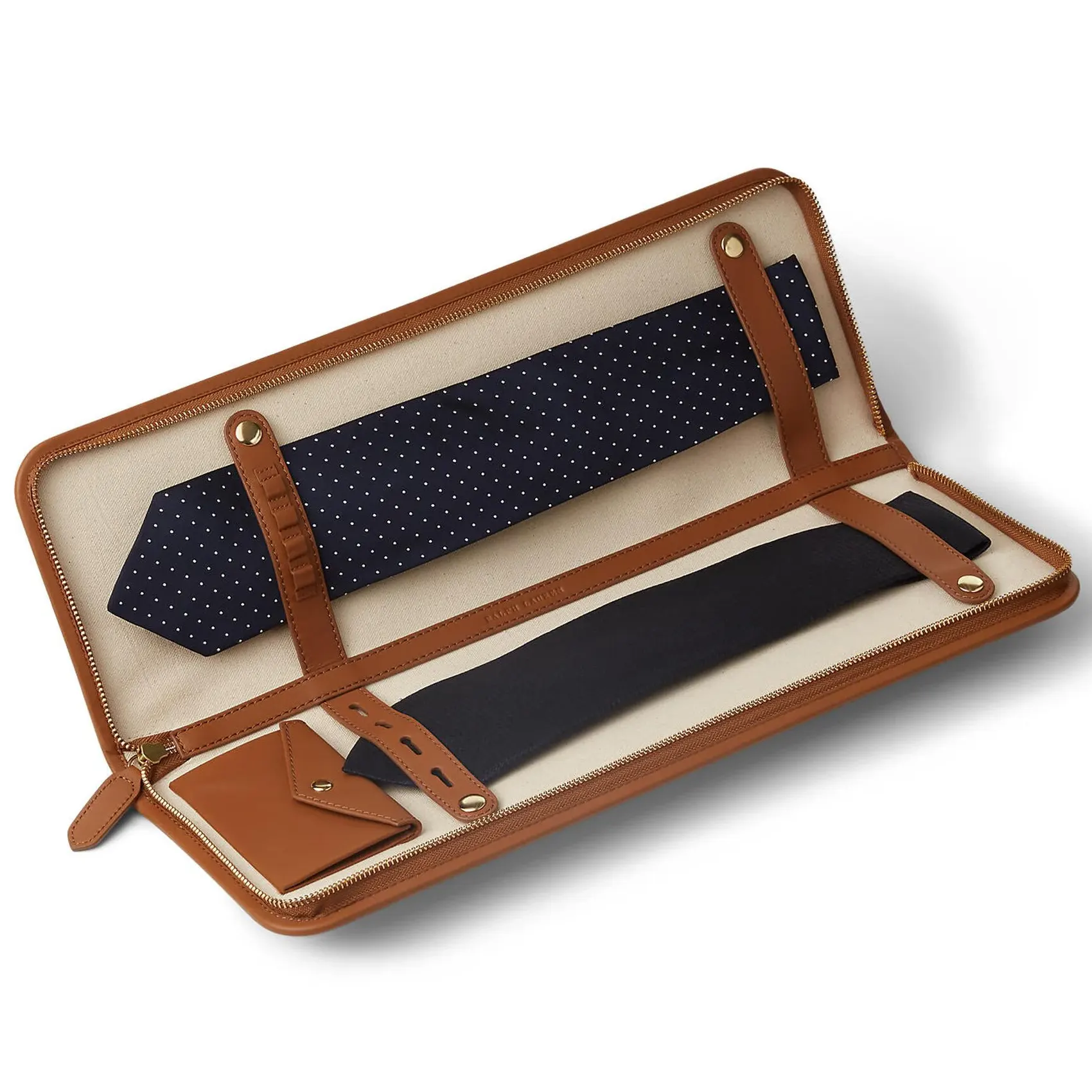 Made of durable canvas with leather and brass details, the case provides reliable protection for your tie. The zipper closure provides easy access to the contents.