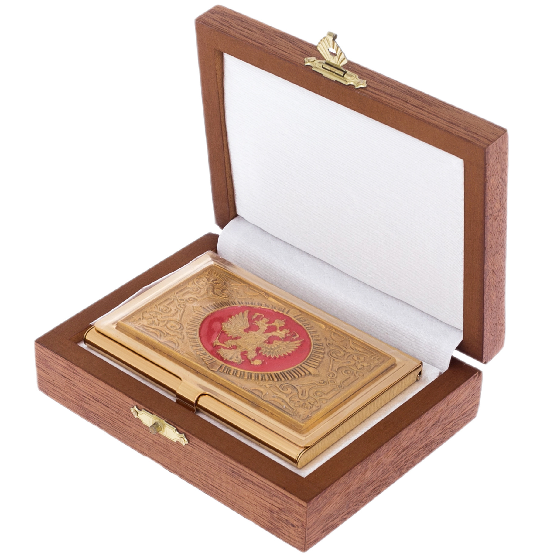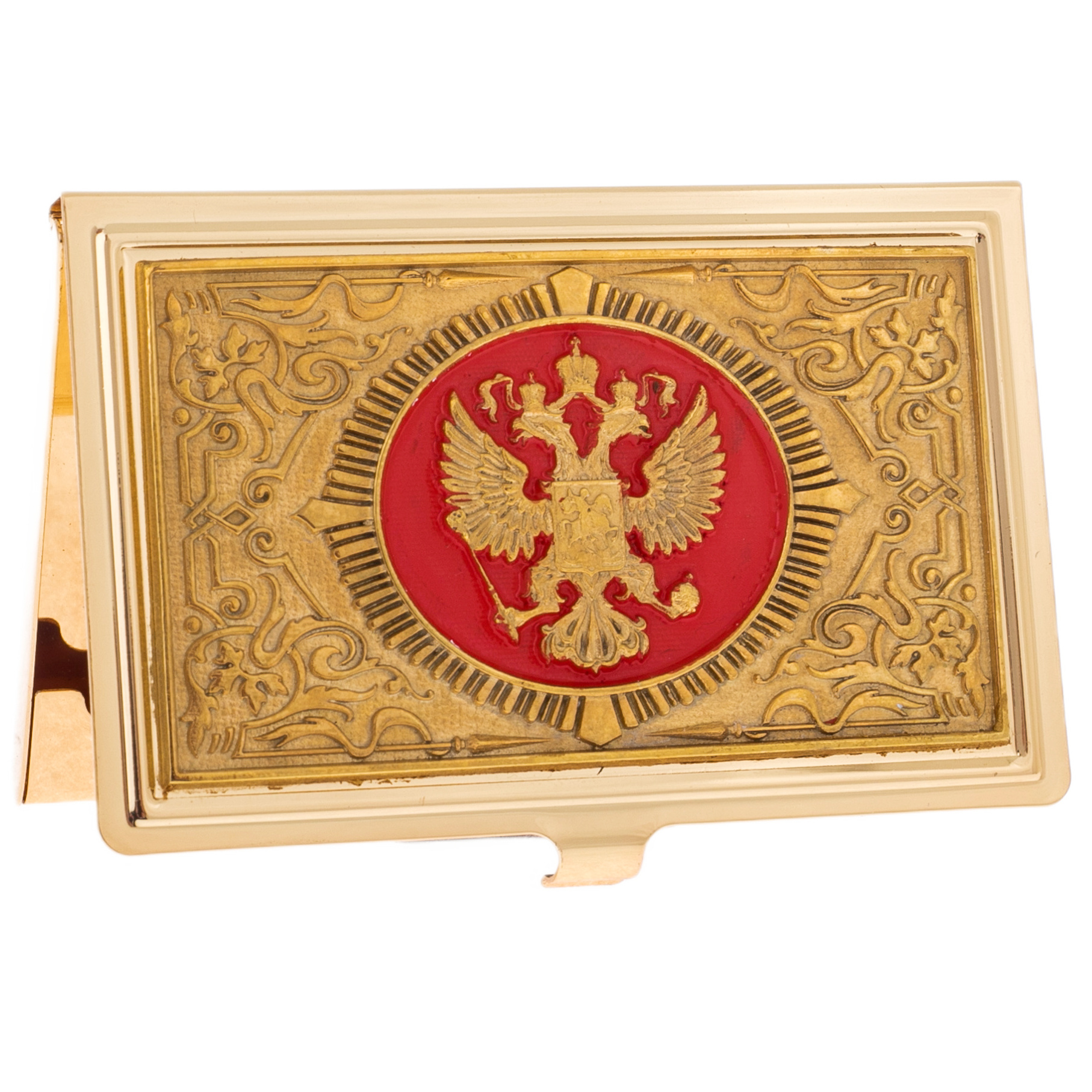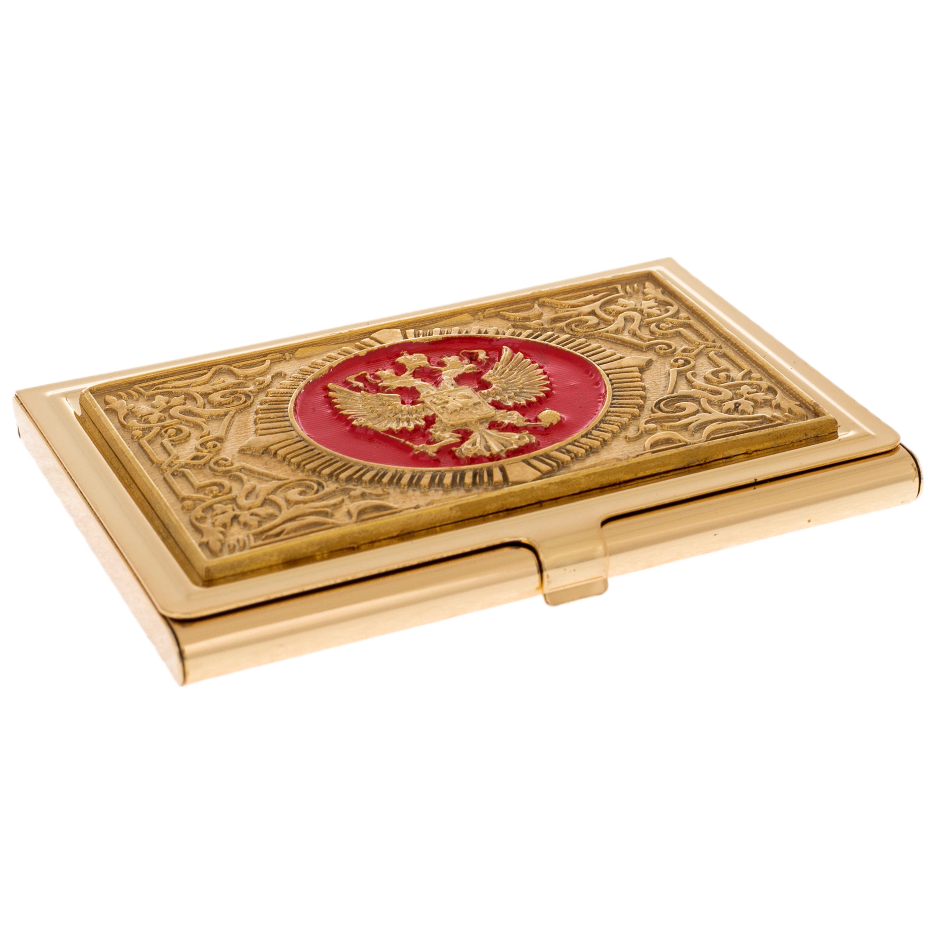 Coat of Arms business card holder with electroplating and enamel, Zlatoust
