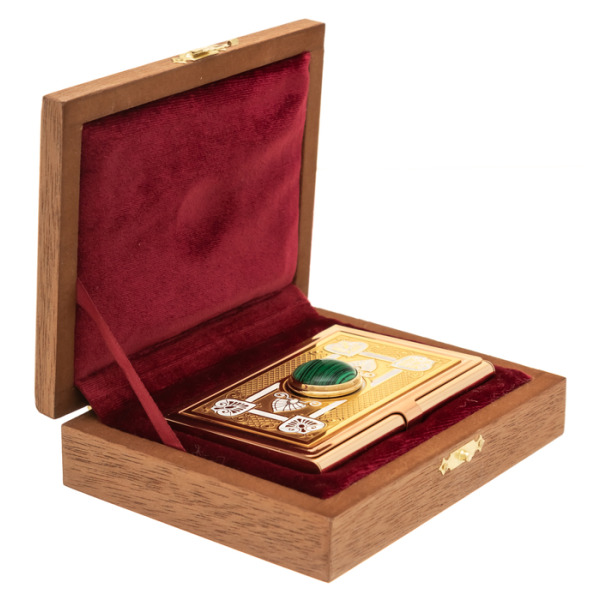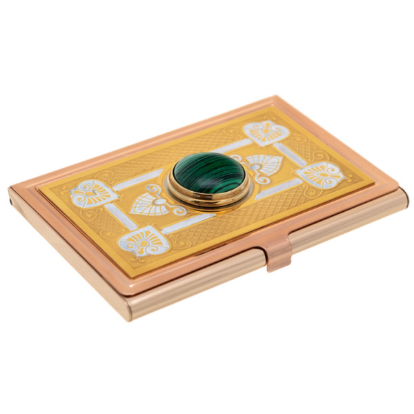 Pocket business card holder "Elegant" with malachite, Zlatoust