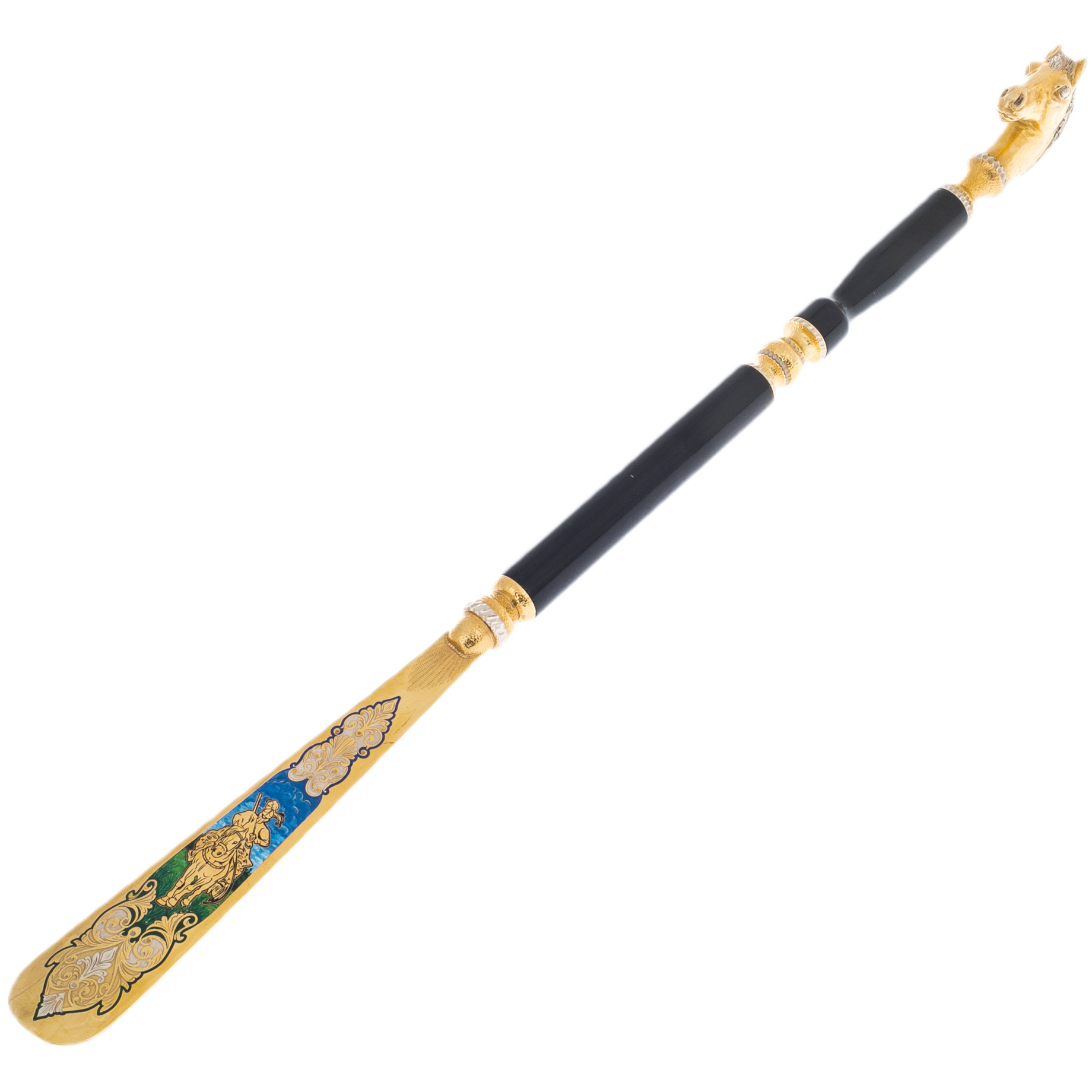Materials:wood, brass, nickel, enamels, cubic zirconia.