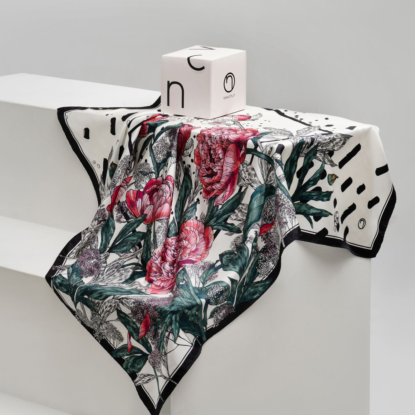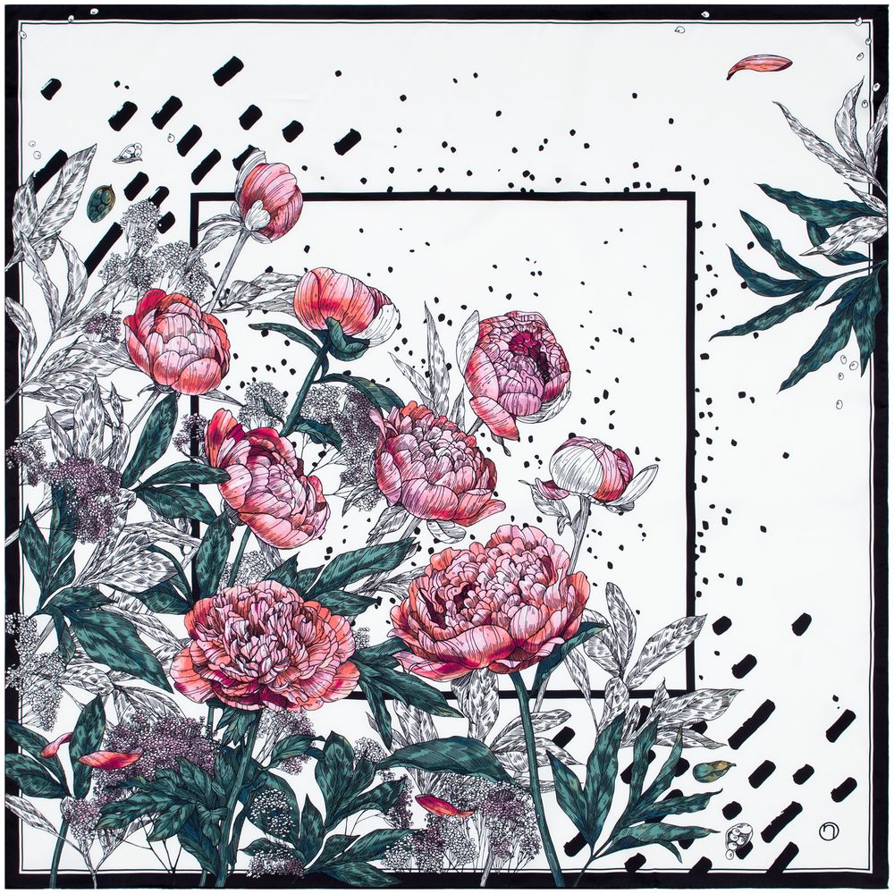 Silk handkerchief "Delicate" peonies