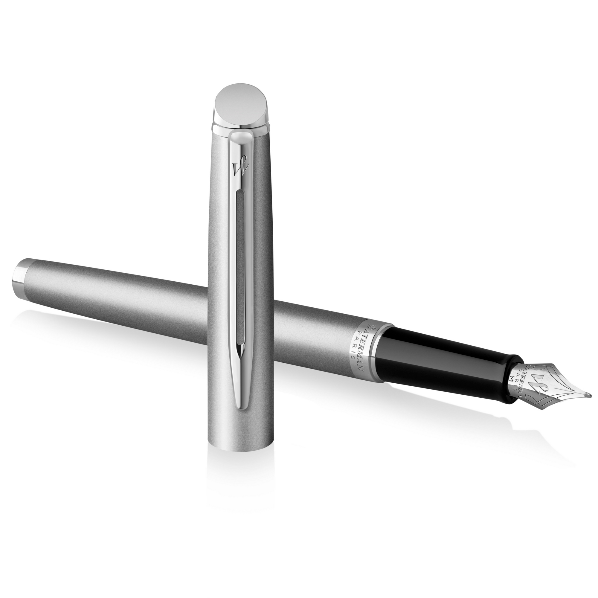 Waterman Hemisphere Entry Point Stainless Steel matte fountain pen in a gift box.