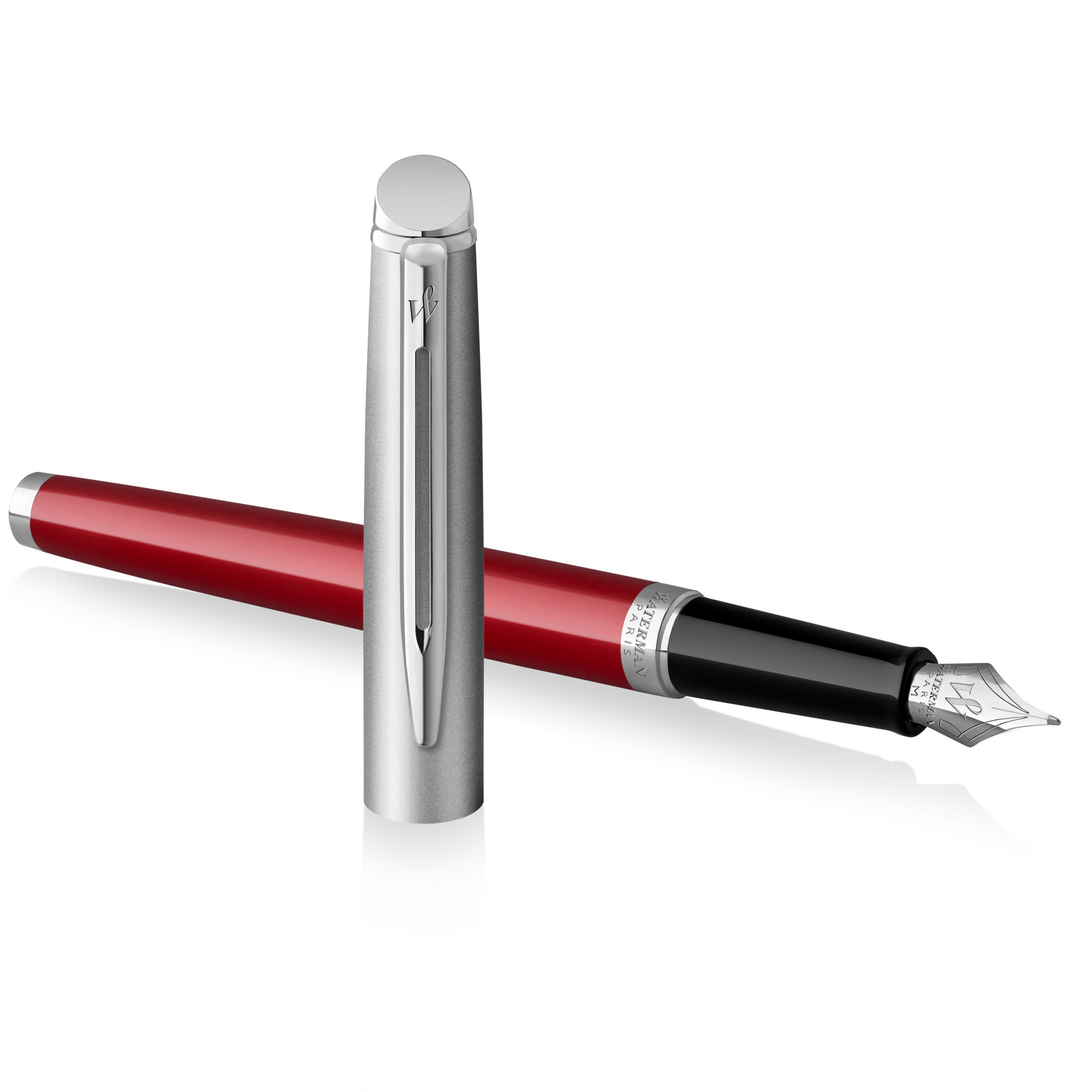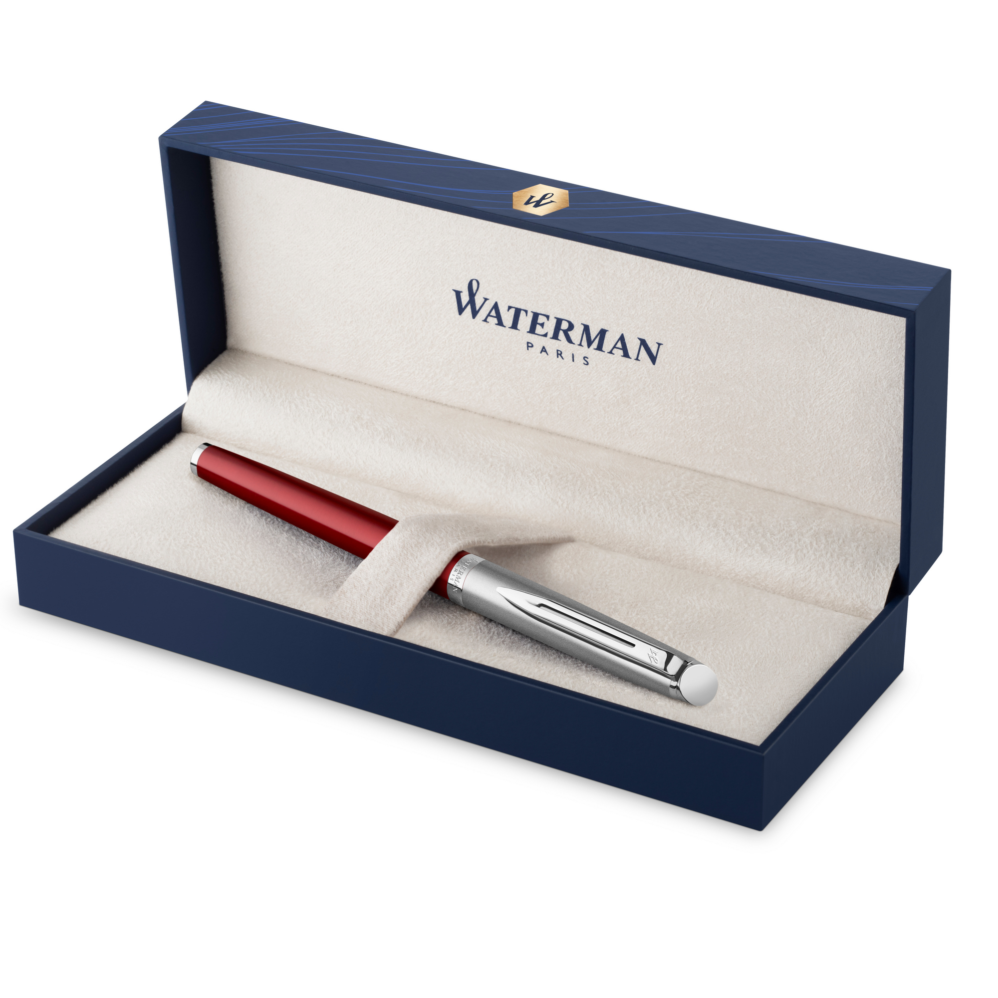 Waterman Hemisphere Entry Point Stainless Steel fountain Pen with Red Lacquer in a gift box.