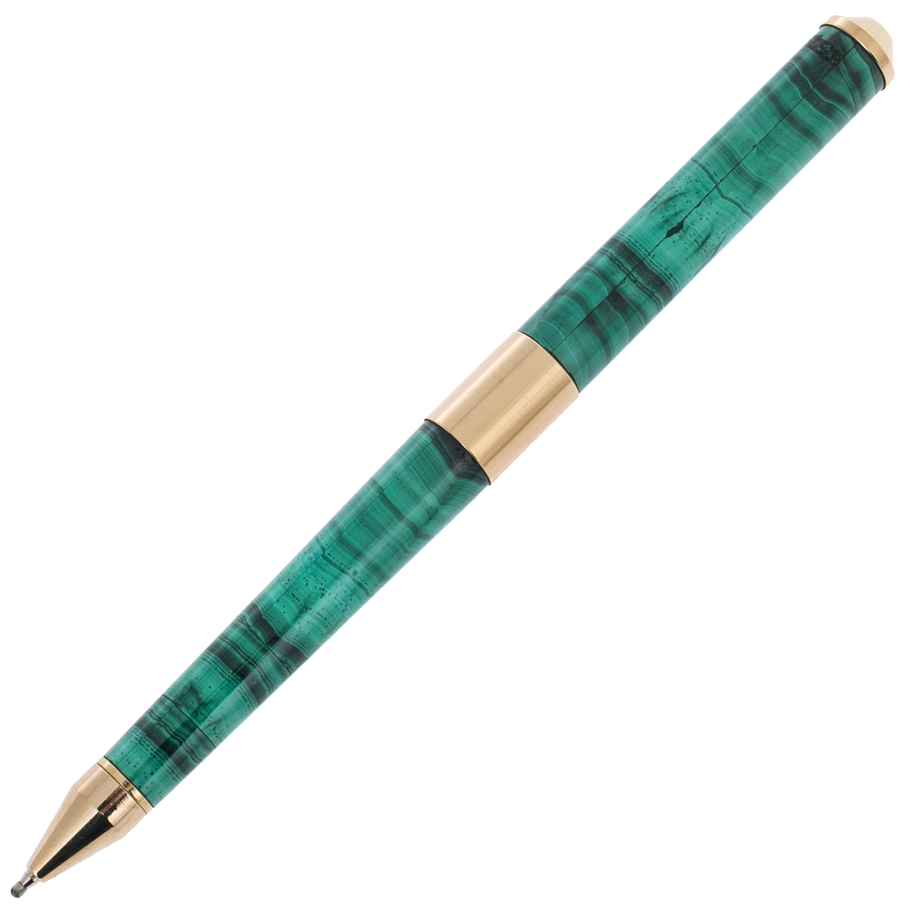 The noble metal details emit a warm golden sheen, emphasizing the solemn monumentality of the natural stone. This harmony of malachite and metal reflects the eternal union of strength and elegance, when natural perfection combines with human skill, creating something more than just a writing tool. Its weight, tactile sensation, smoothness of lines — everything speaks of status, habit of quality, awareness of one's own superiority.